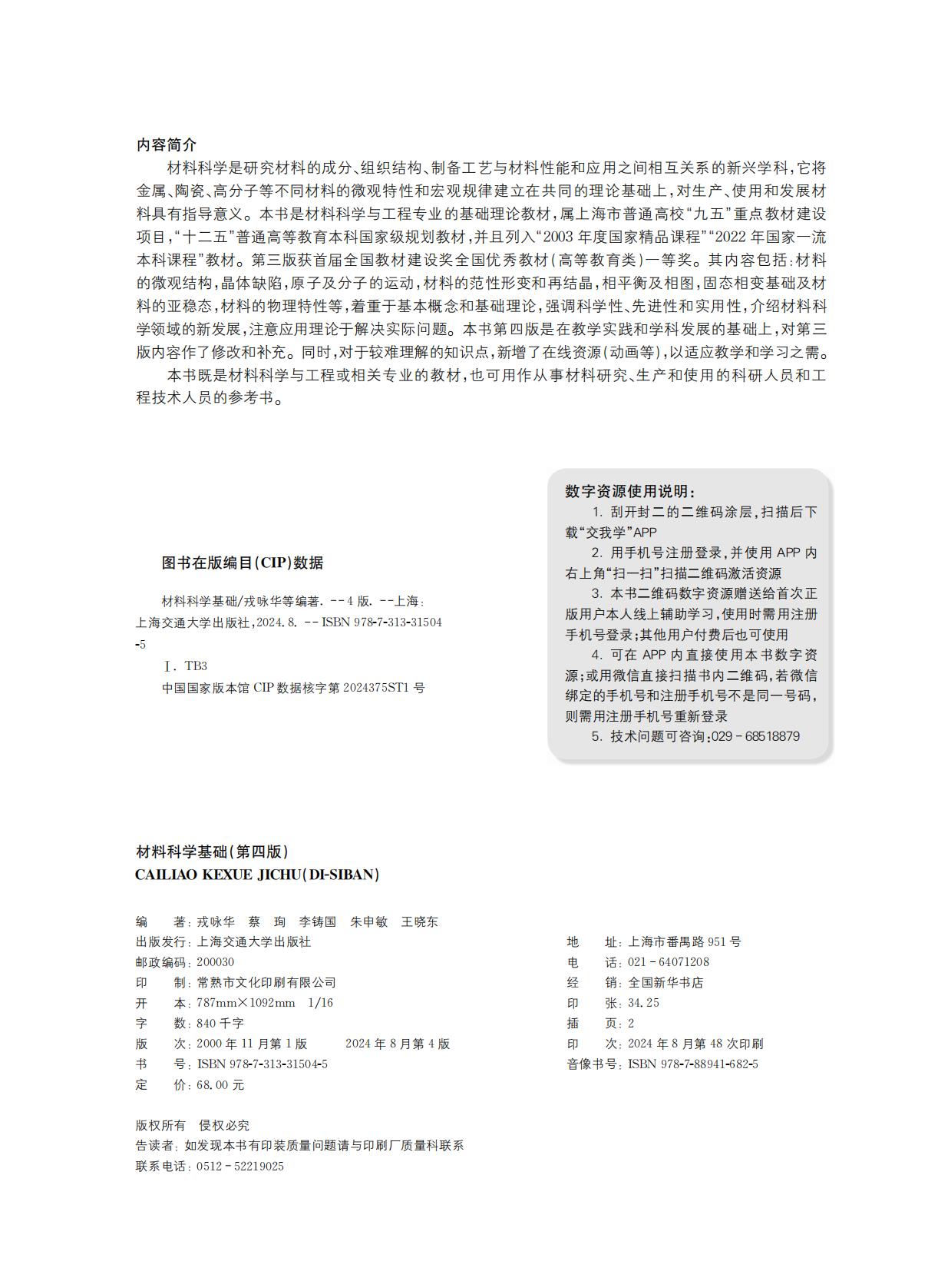 材料科学基础(第四版)