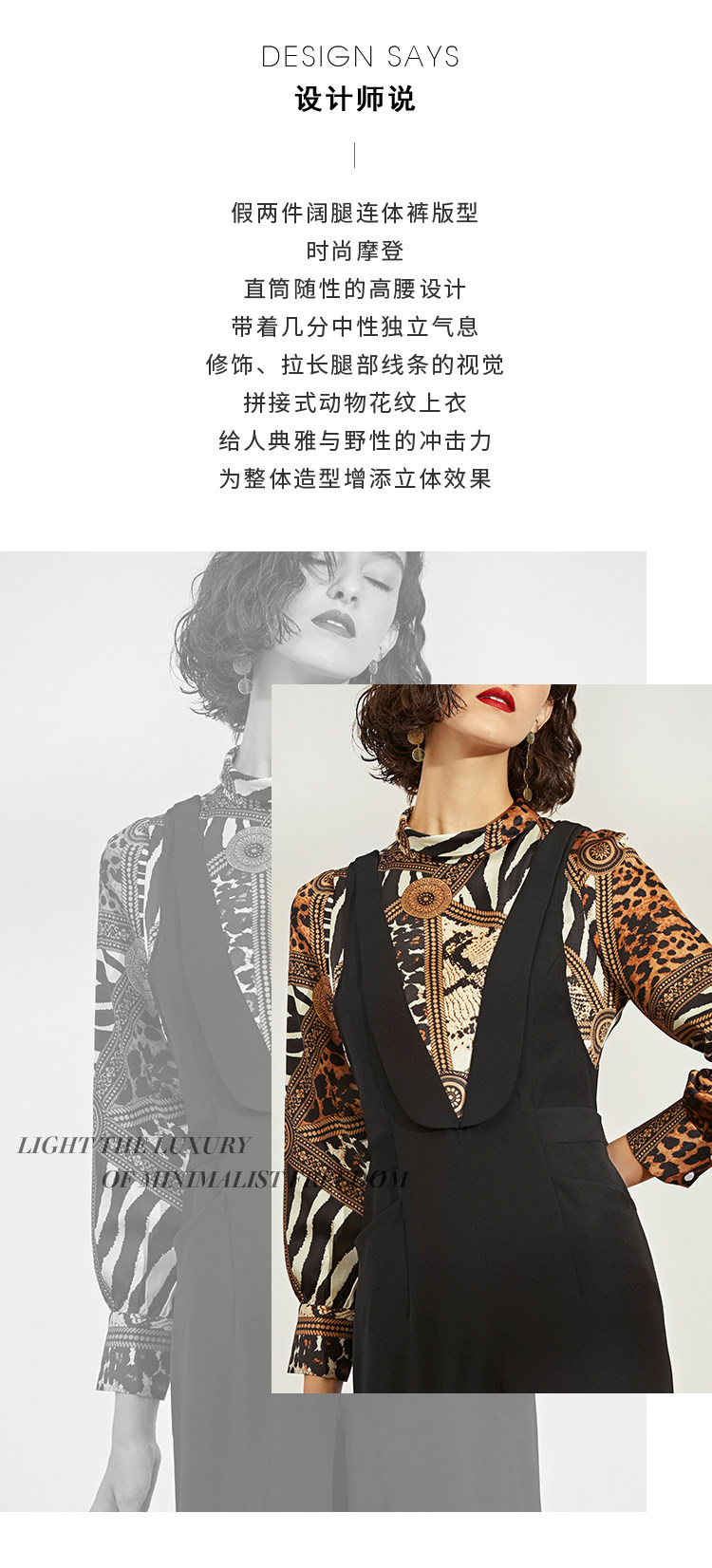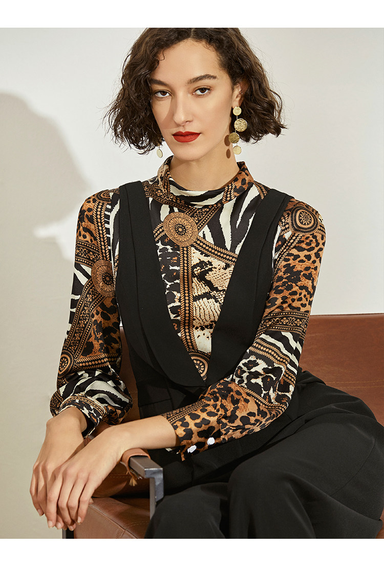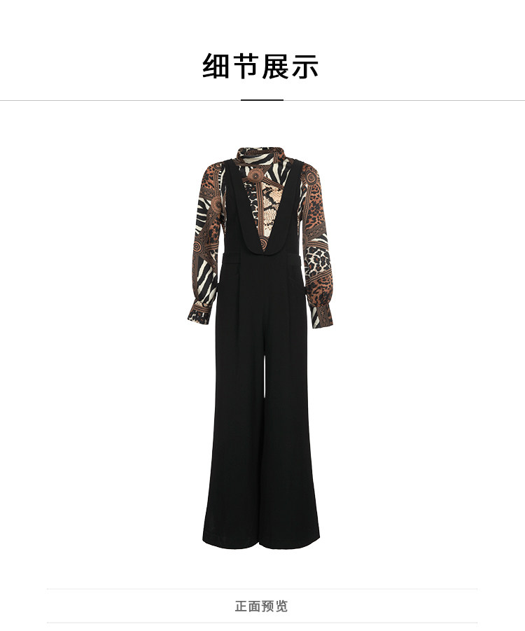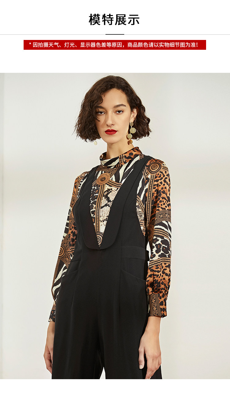 VIMAGE纬漫纪女装秋冬新品个性豹纹半高领气质显瘦连体阔腿裤V1207821