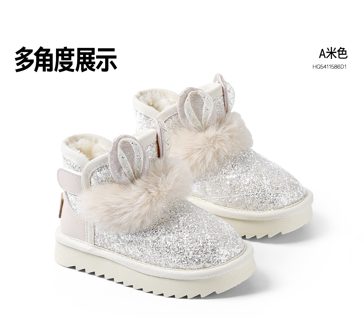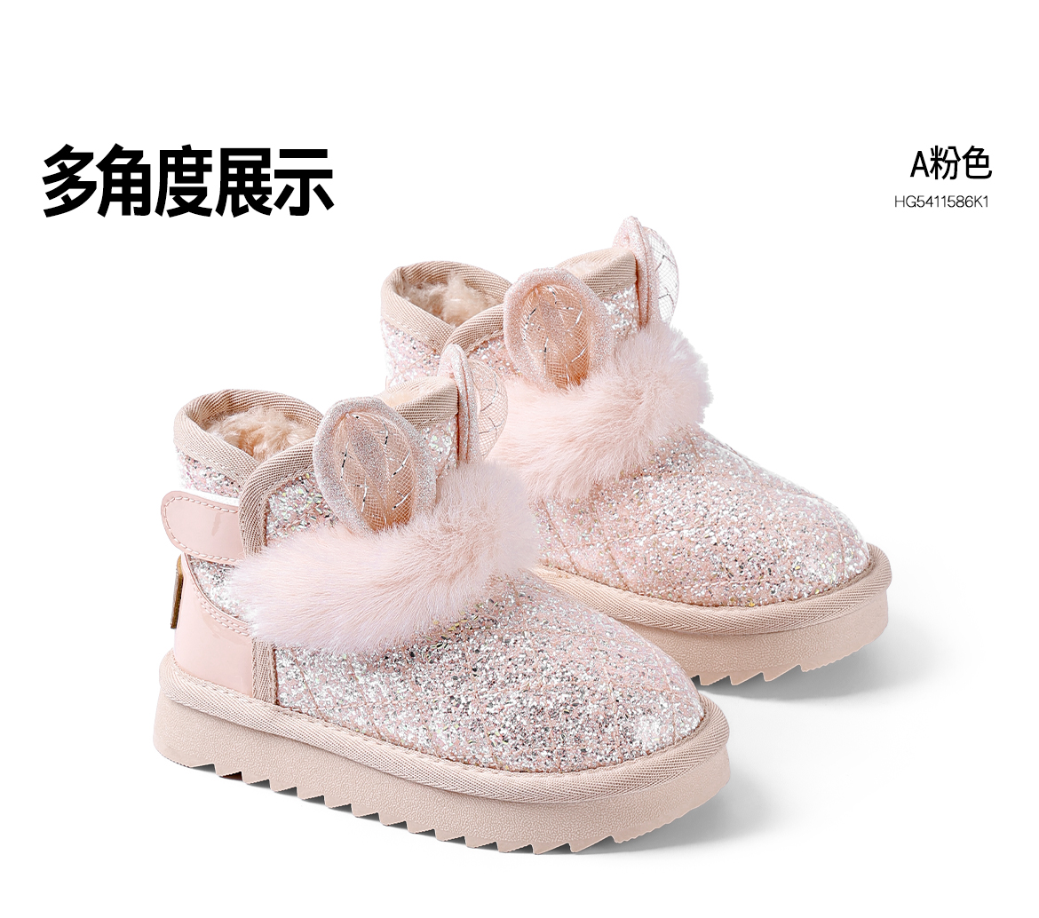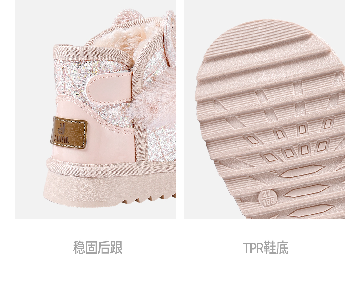 ANNIL/安奈儿童鞋女童防水雪地靴冬季加绒女孩公主宝宝棉鞋儿童靴子HG5411586