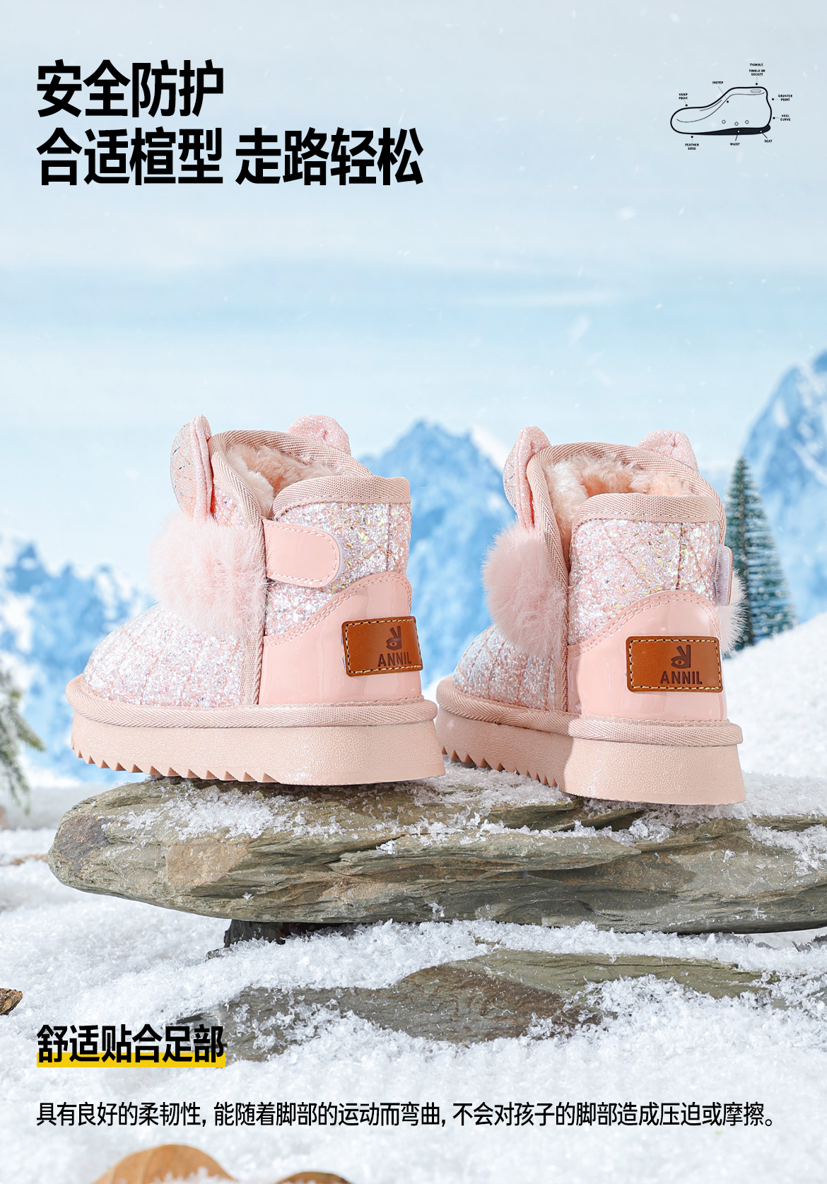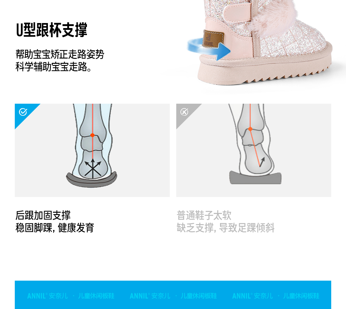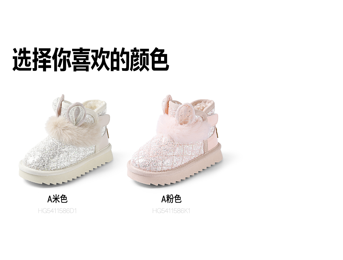 ANNIL/安奈儿童鞋女童防水雪地靴冬季加绒女孩公主宝宝棉鞋儿童靴子HG5411586