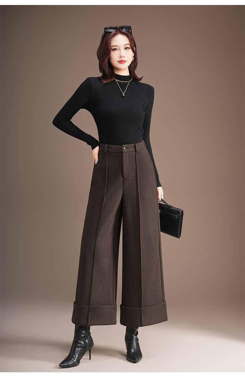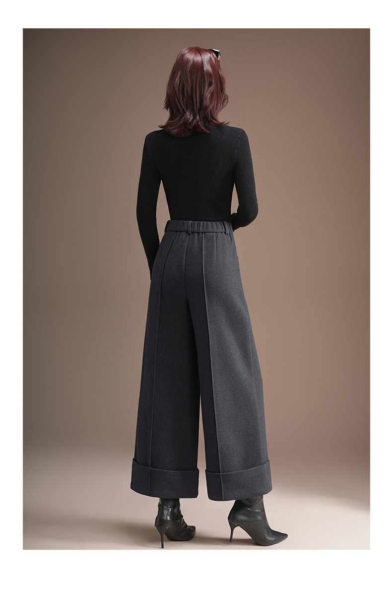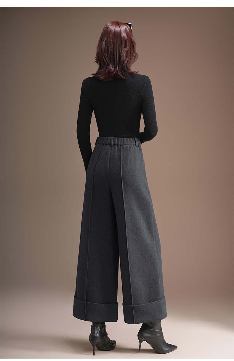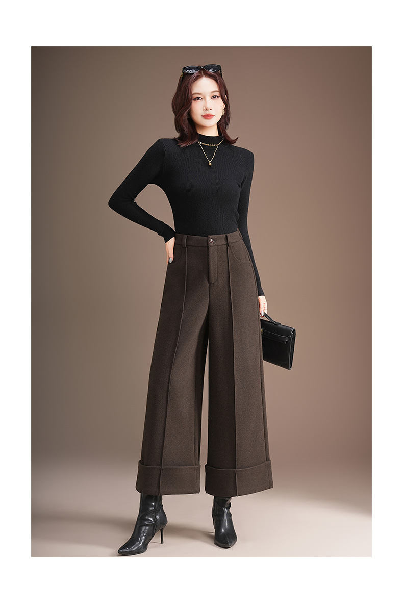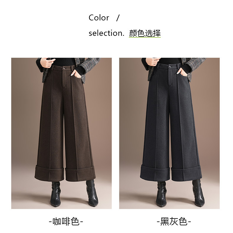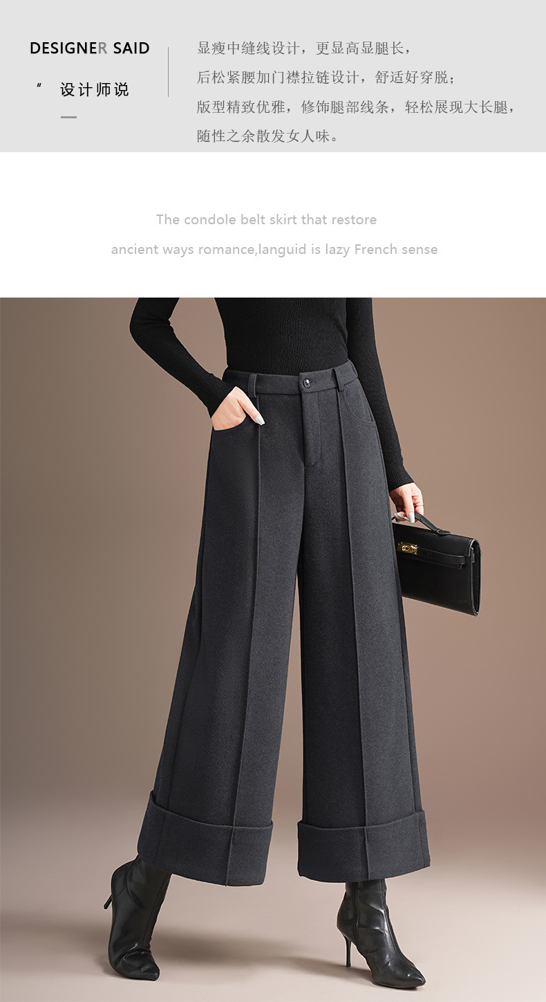 QYM 6995-Y羊毛呢阔腿裤高腰加厚保暖休闲裤