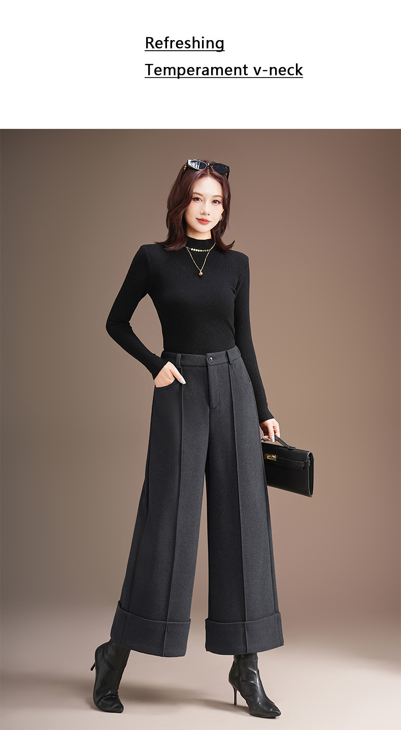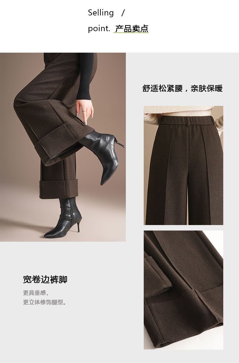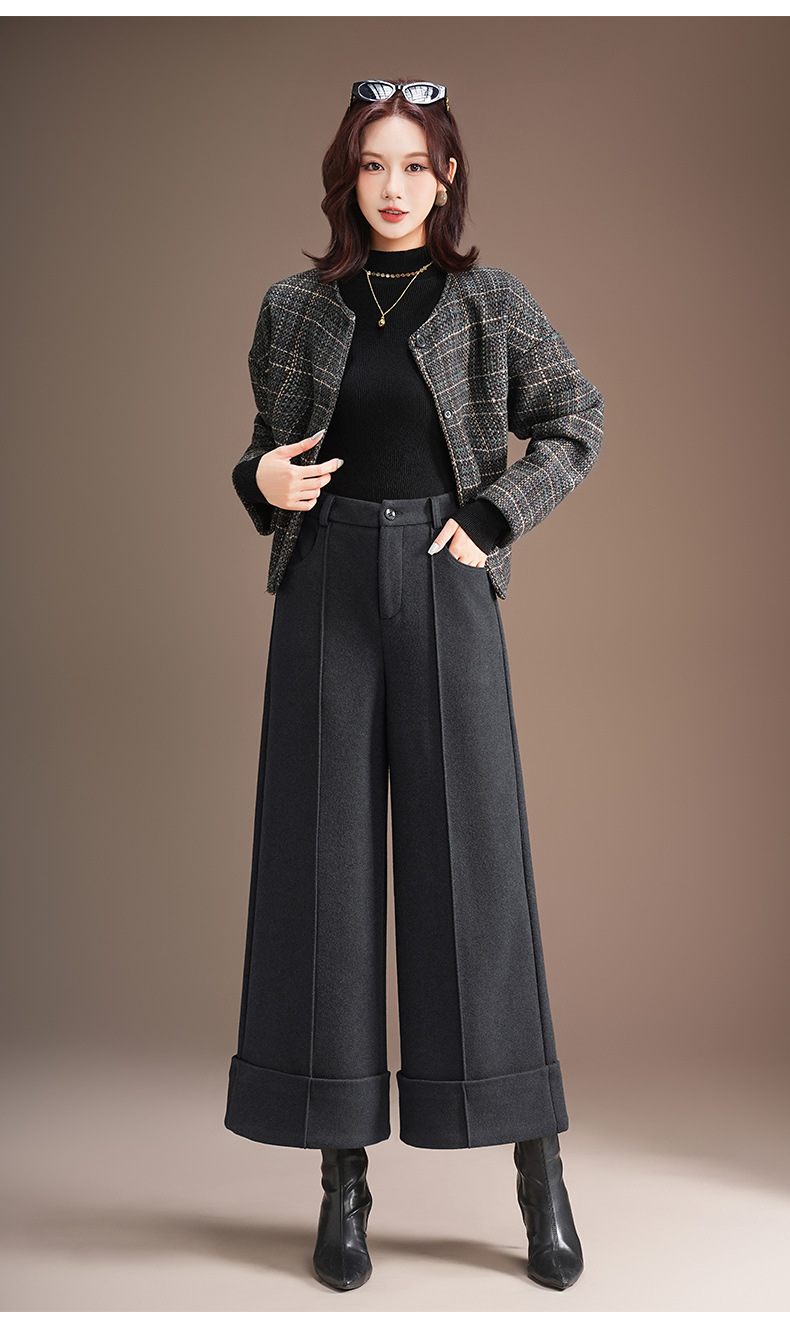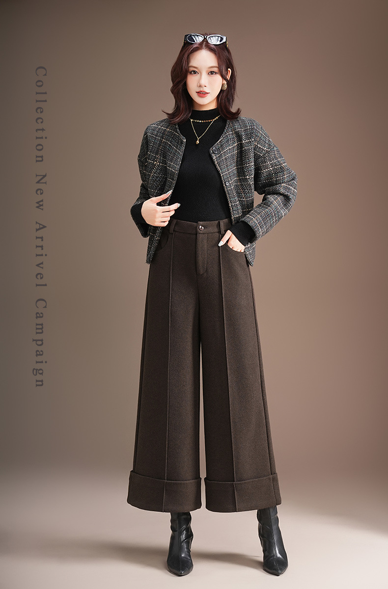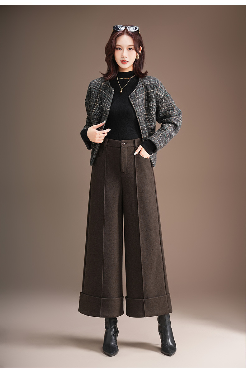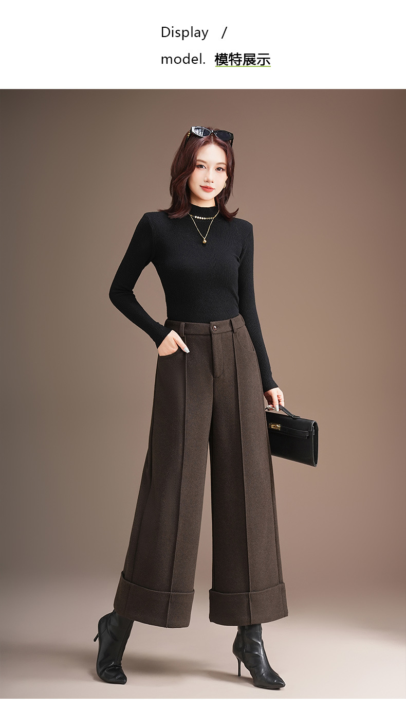 QYM 6995-Y羊毛呢阔腿裤高腰加厚保暖休闲裤