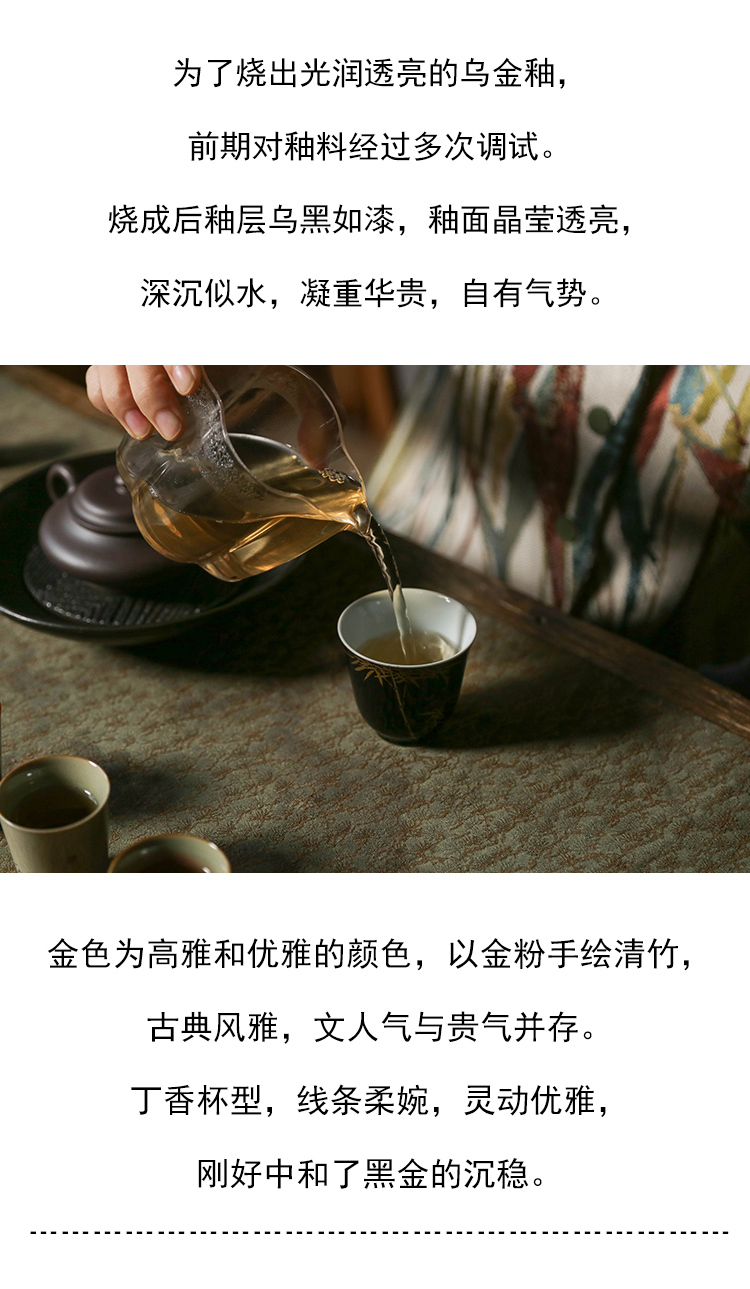 茶香记 南山夏乌金釉金竹丁香杯80ml景古法颜色釉手绘主人杯茶杯