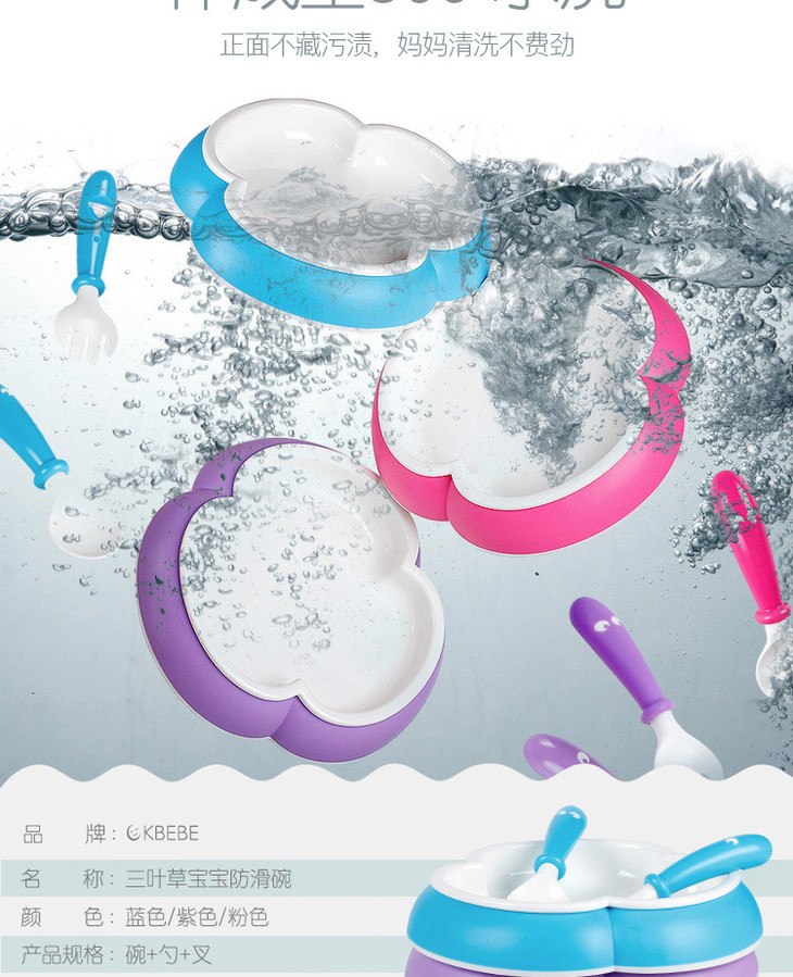 CKBEBE三叶造型碗勺叉三件套儿童餐具婴儿碗蓝色JPY带授权招加盟代理