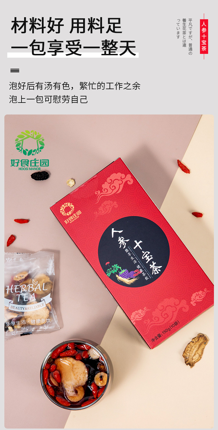 【好食庄园】人参十宝茶 150g 玛咖黄精三角包茶非牛蒡黑枸杞茶叶