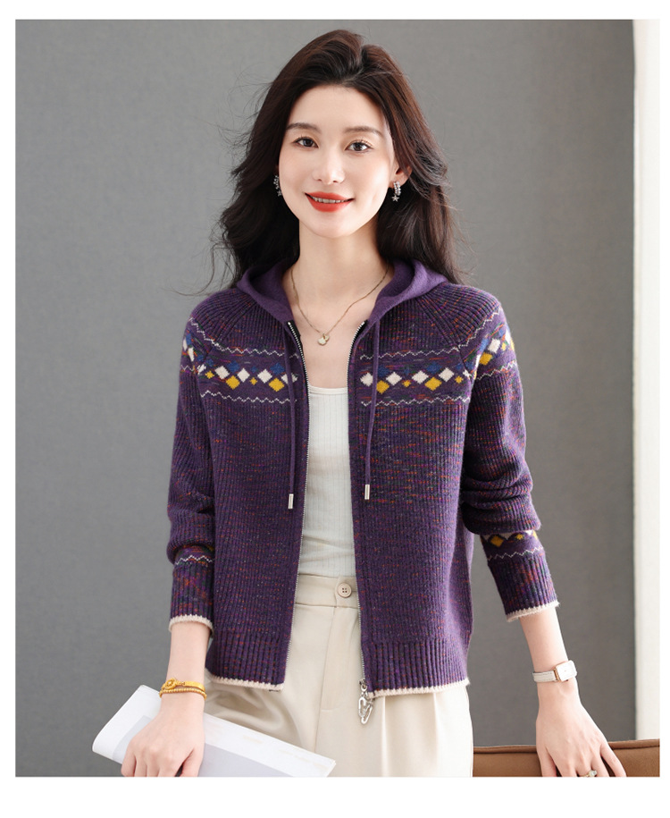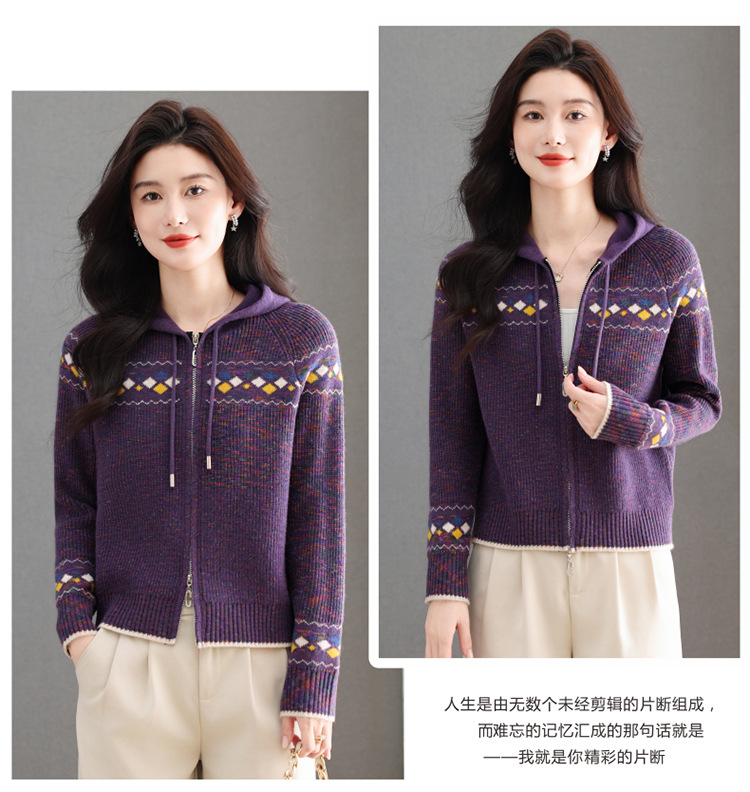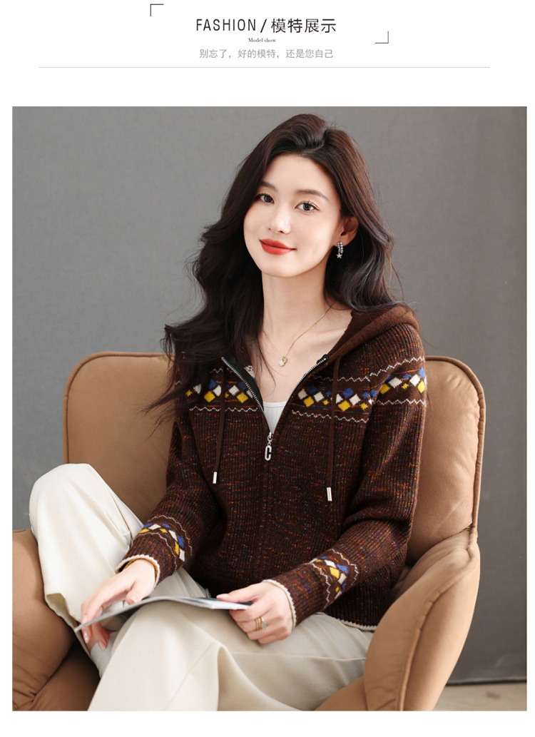 YD87972025秋冬新款连帽领长袖针织衫宽松休闲上衣外套毛衣开衫女 商品图0