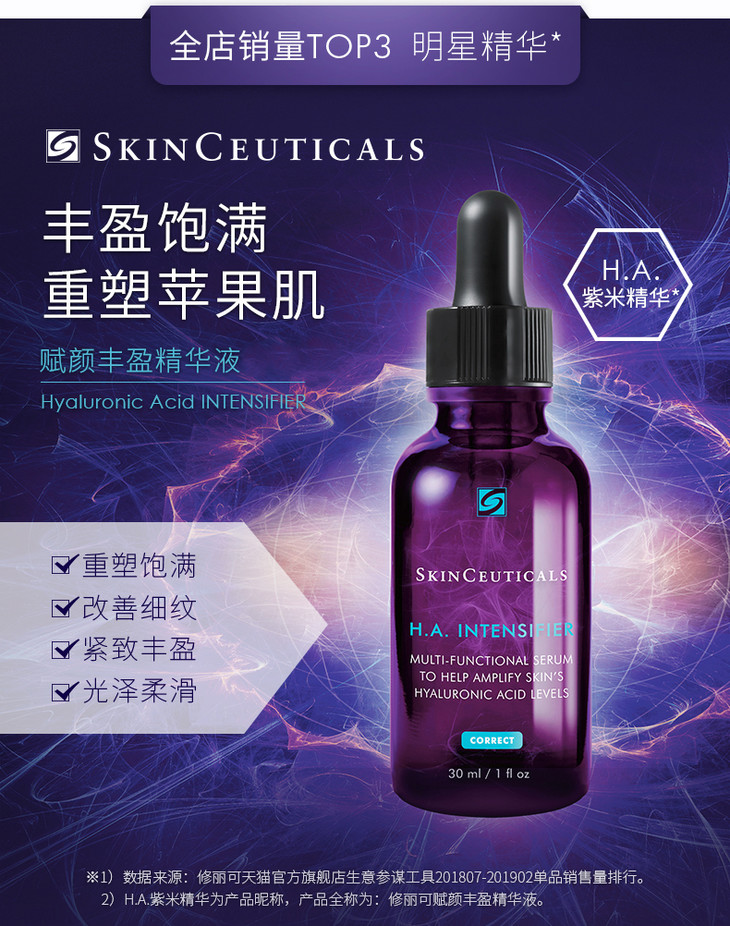 修丽可杜克紫米玻色因HA紧致抗皱苹果肌抗衰老精华