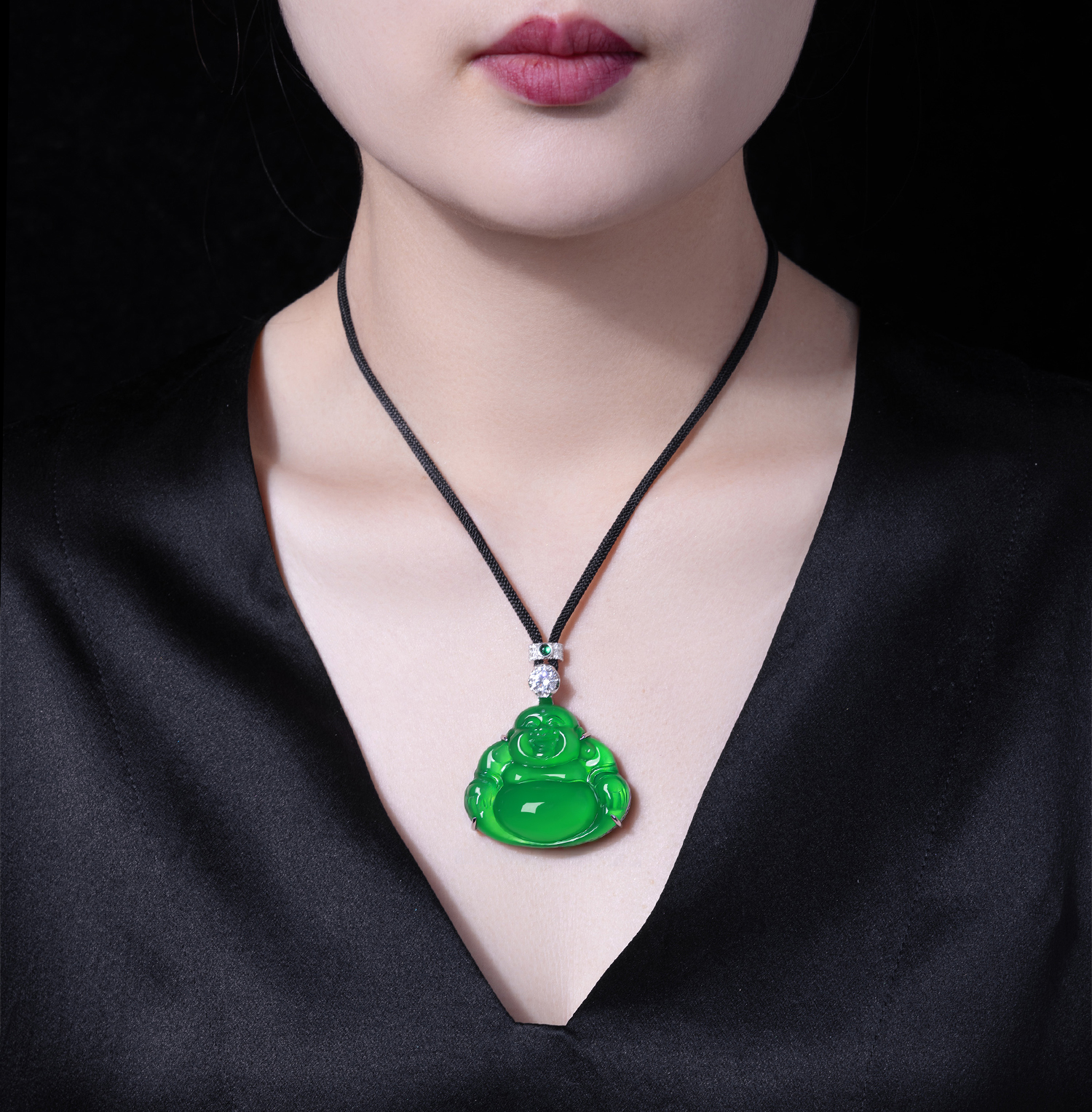 GAONAS 帝王绿裸镶佛公项链 10529XG