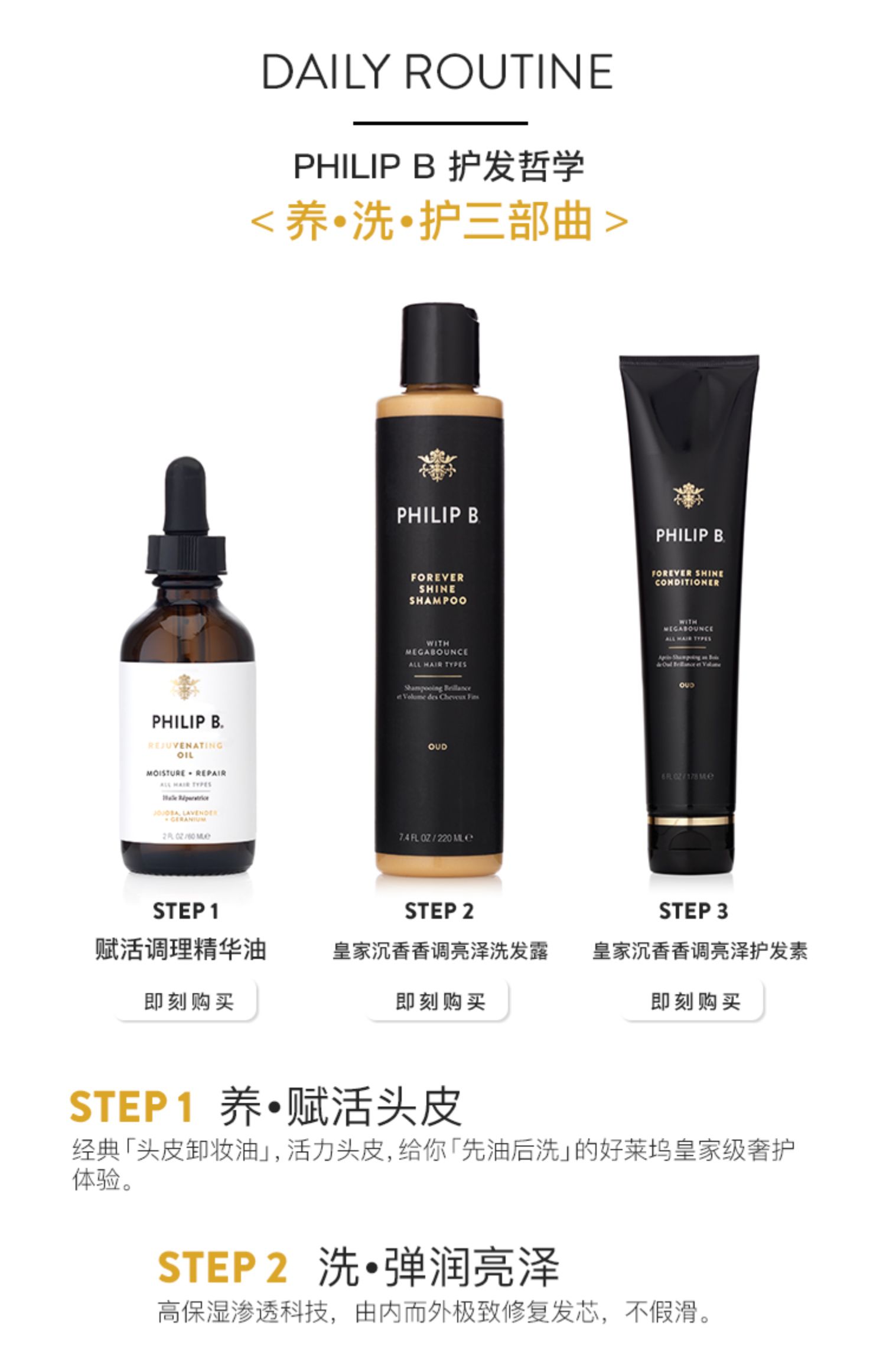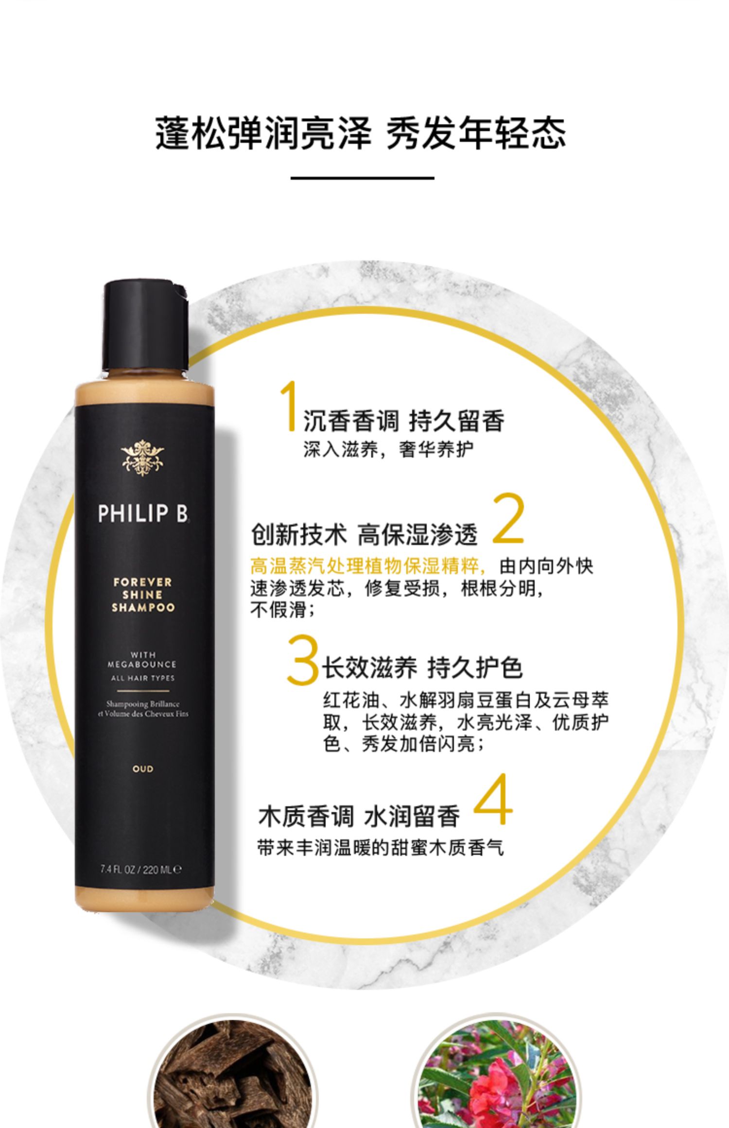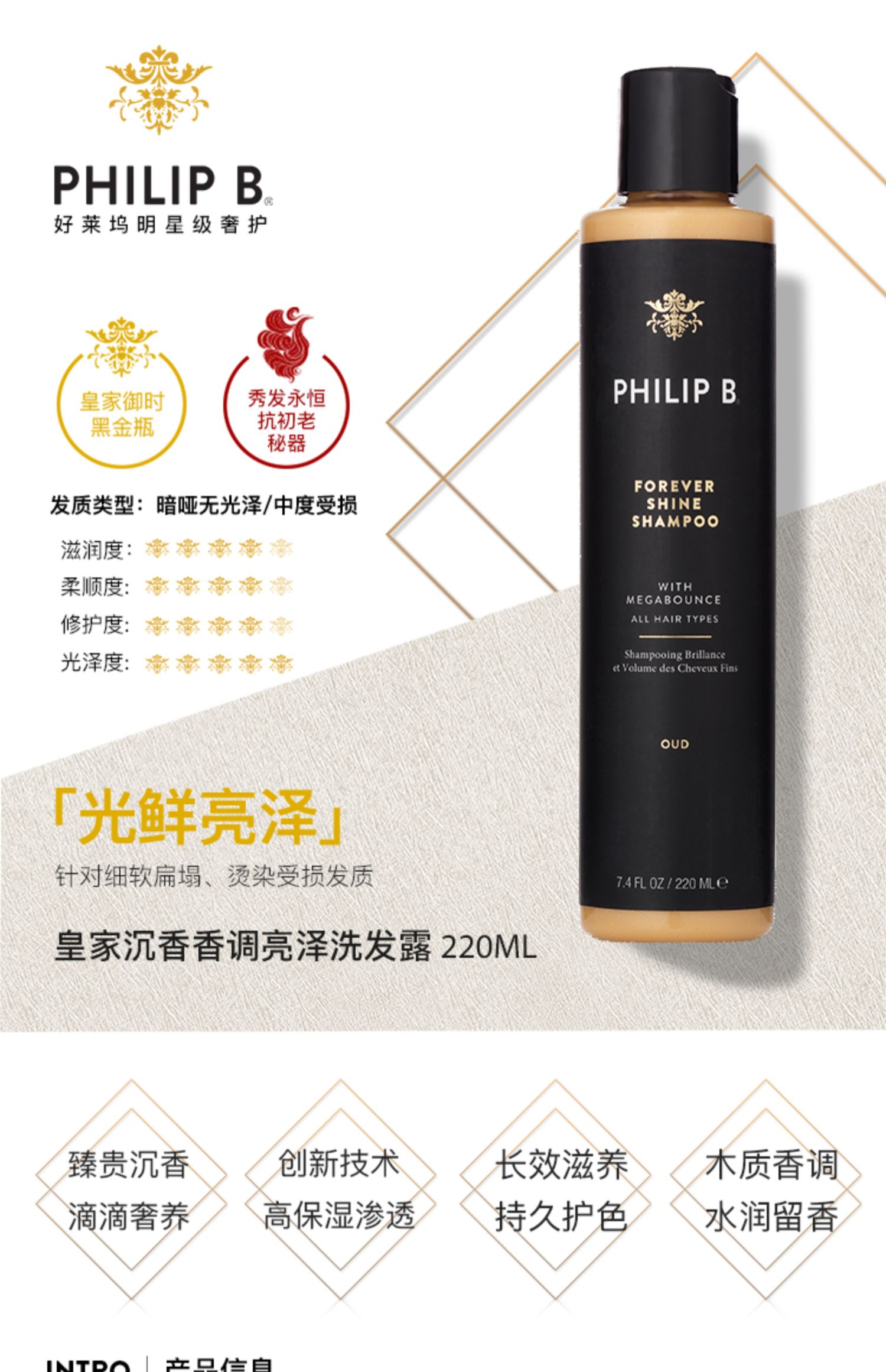 PHILIP B皇家乌木沉香亮泽洗发水 改善修复受损深层滋养