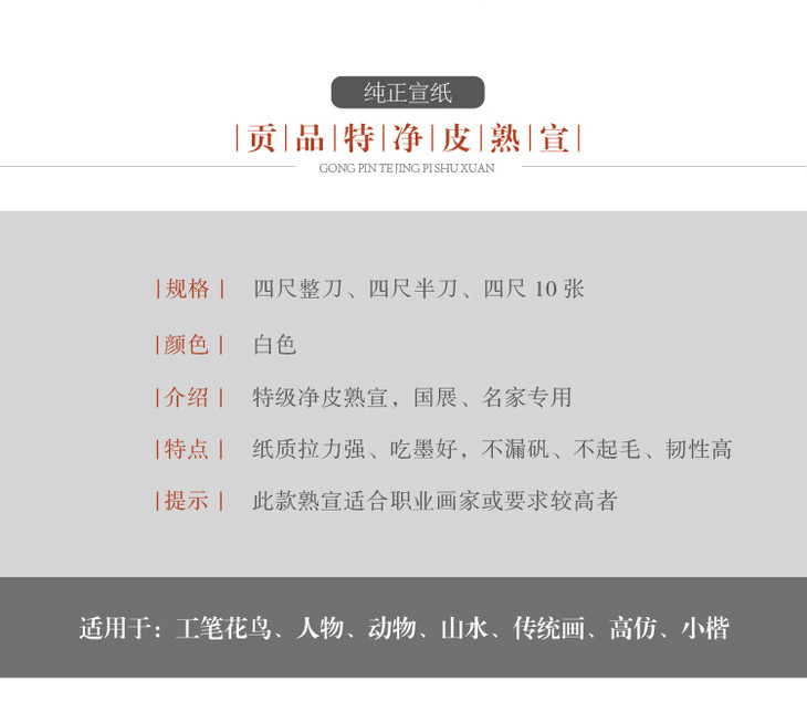 贡品特净皮熟宣纸