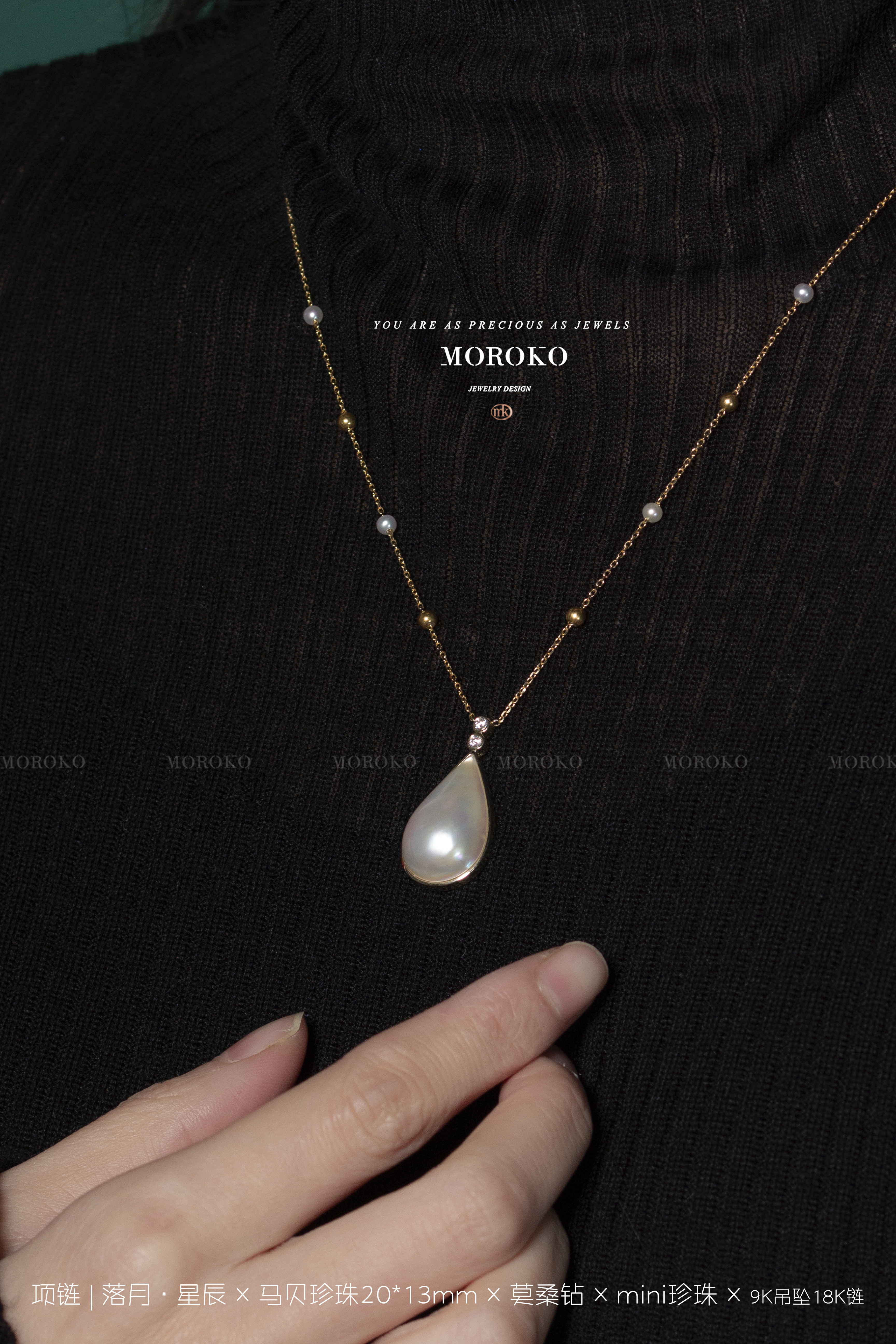 落月·星辰 | 水滴马贝项链