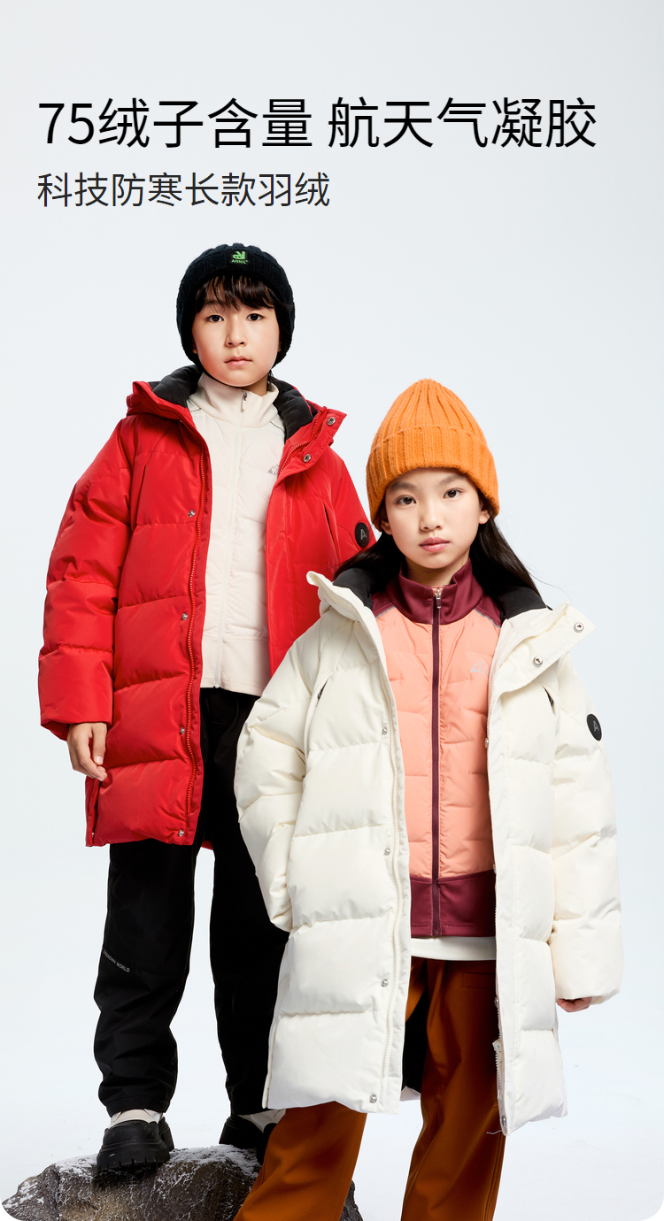 【极寒-15~-5℃】男女童科技防寒长款羽绒服外套冬季新款安奈儿童装EM445617
