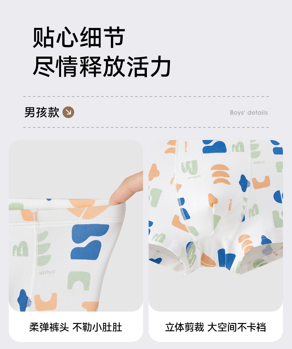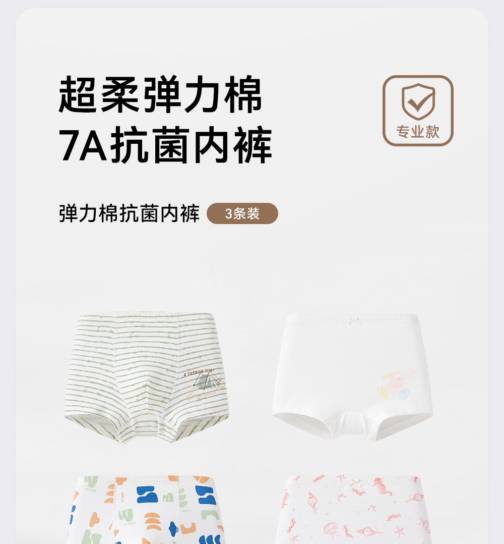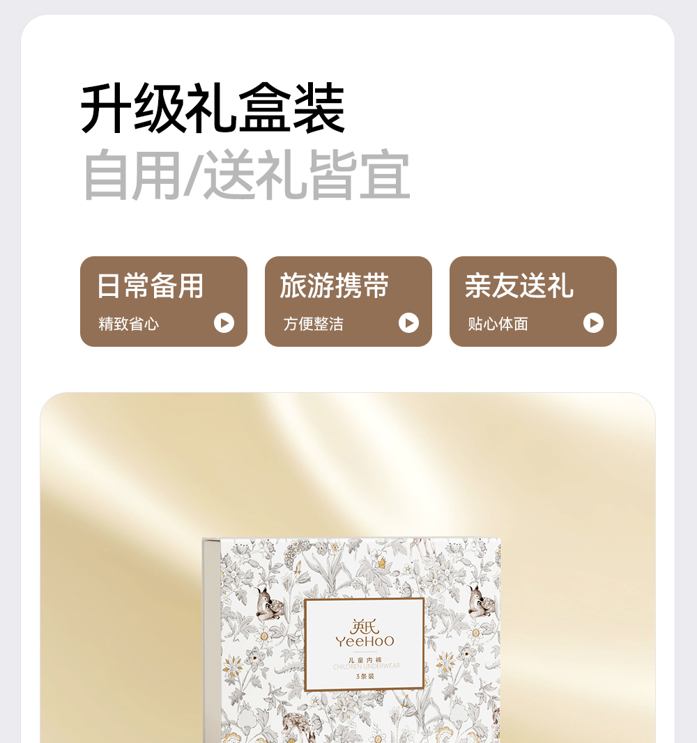 【7A抗菌礼盒装】英氏儿童内裤透气宝宝平角礼盒装男女童打底短裤不夹屁屁