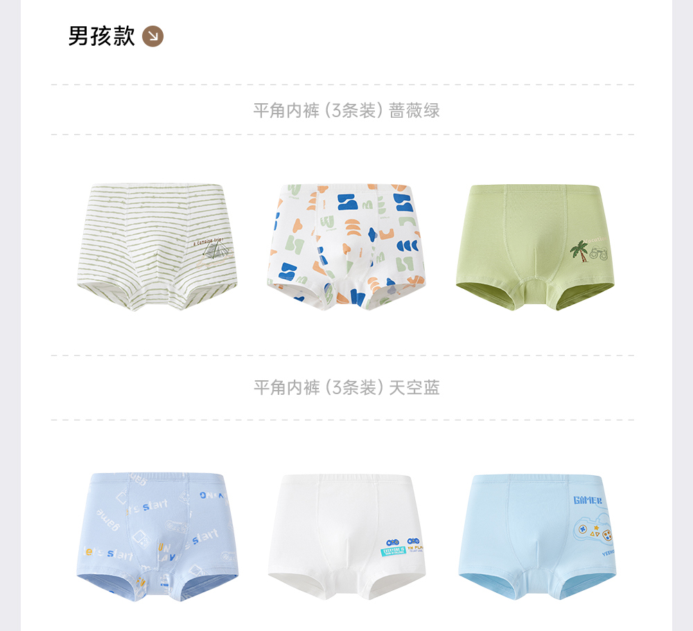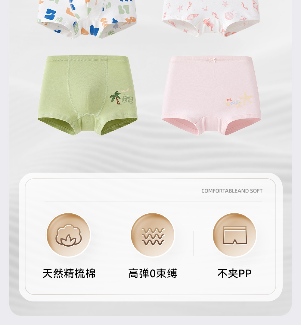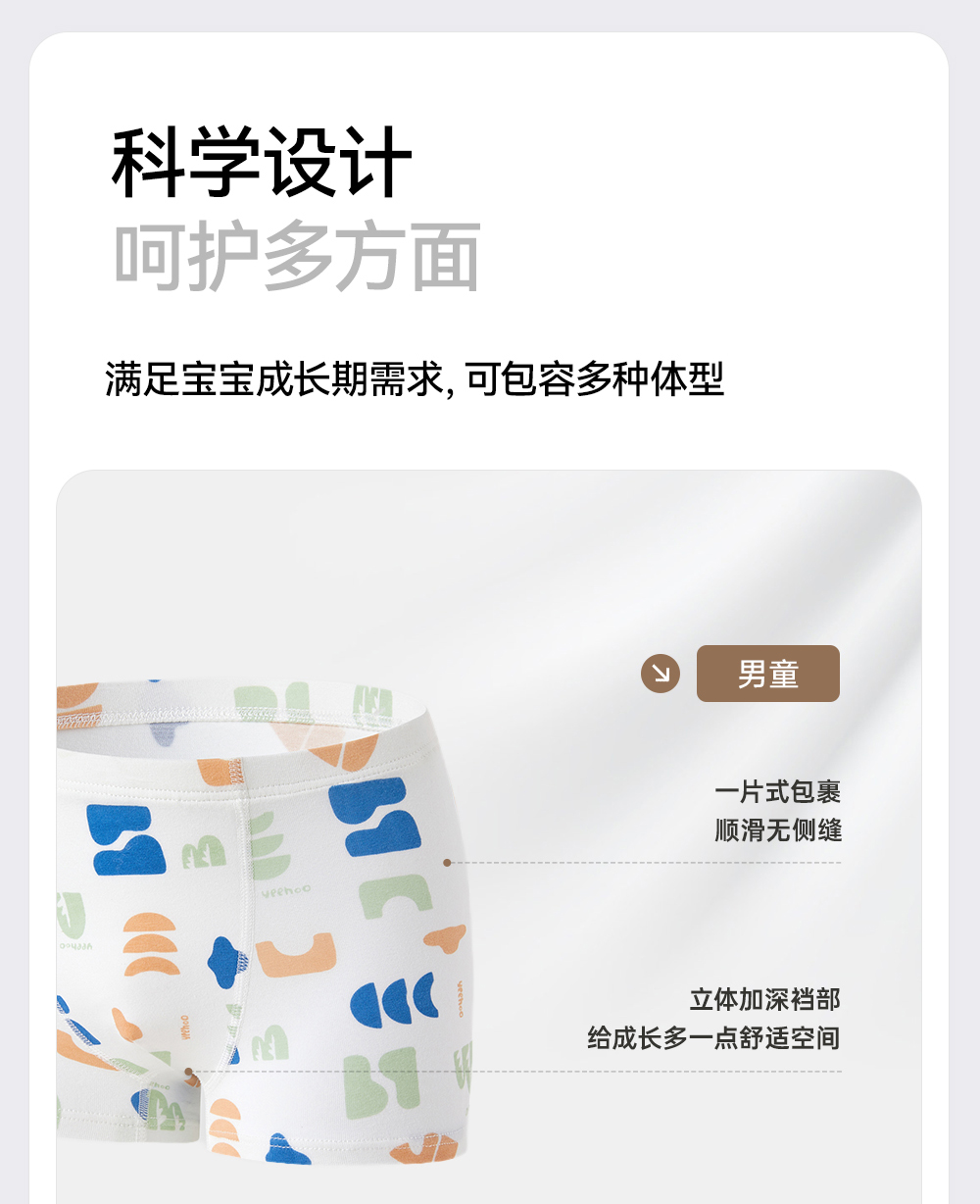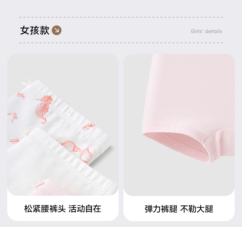 【7A抗菌礼盒装】英氏儿童内裤透气宝宝平角礼盒装男女童打底短裤不夹屁屁