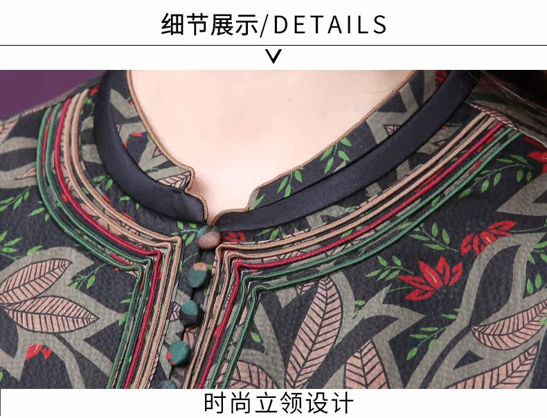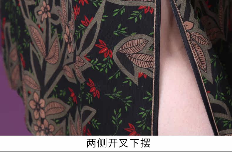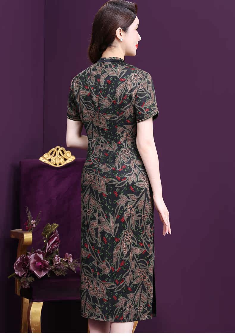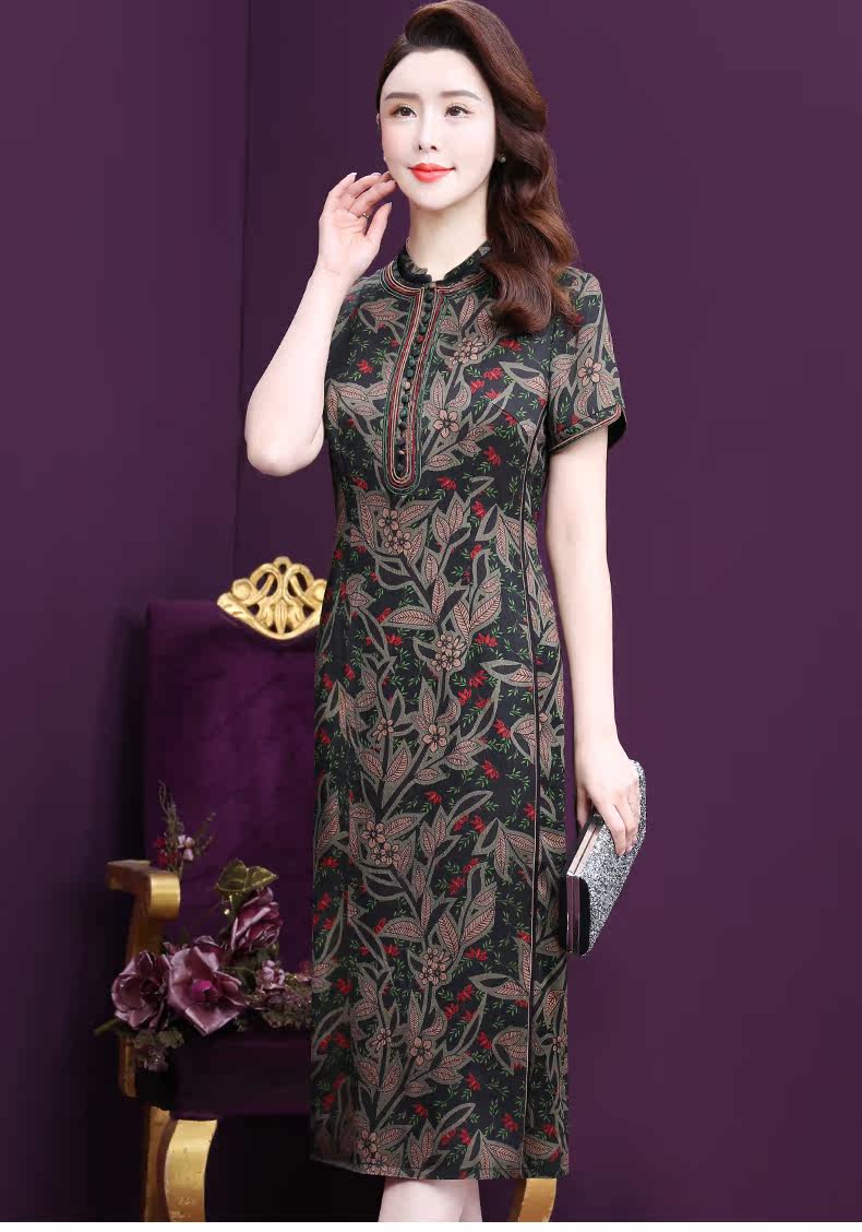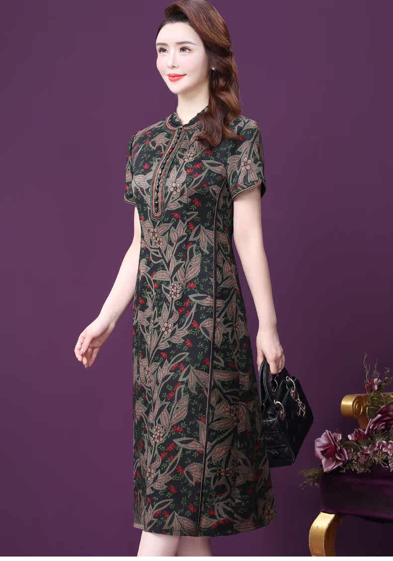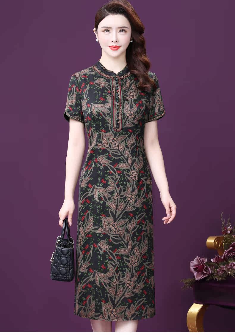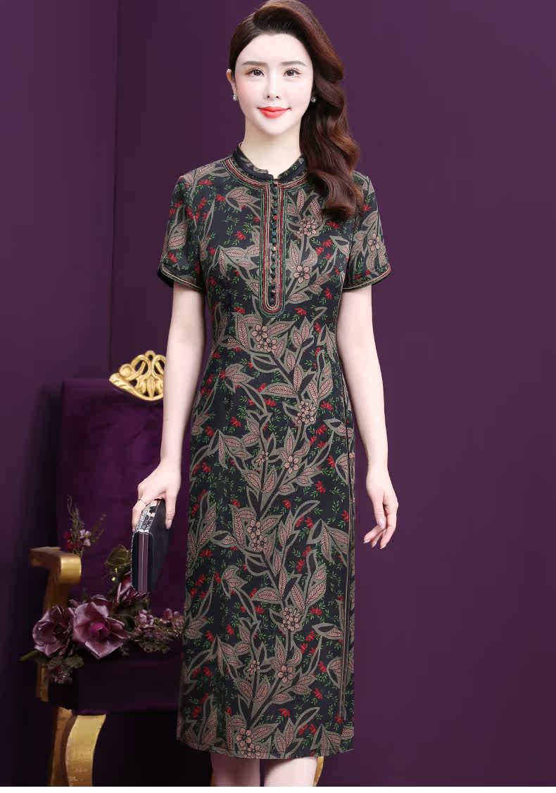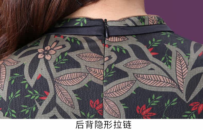WXY-2937夏新款收腰减龄印花大码小立领真丝连衣裙