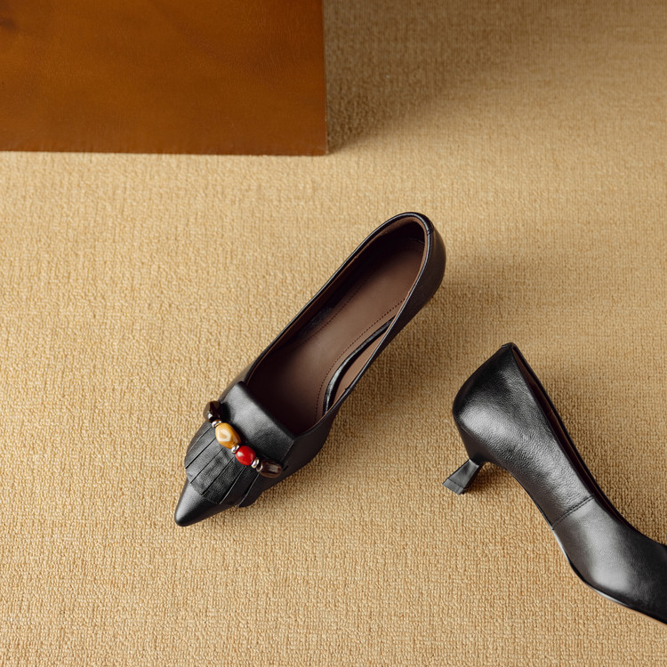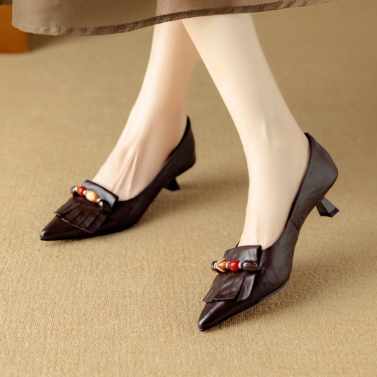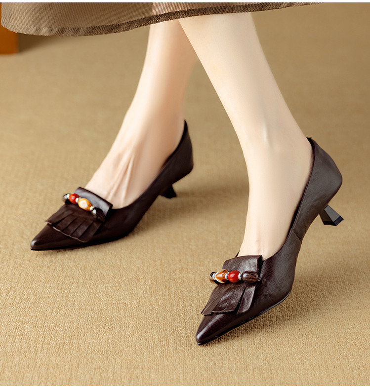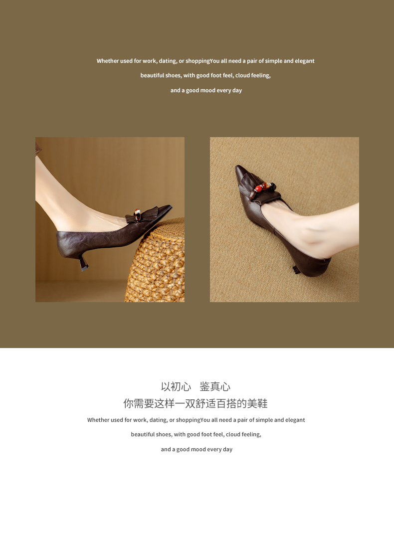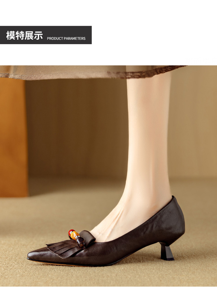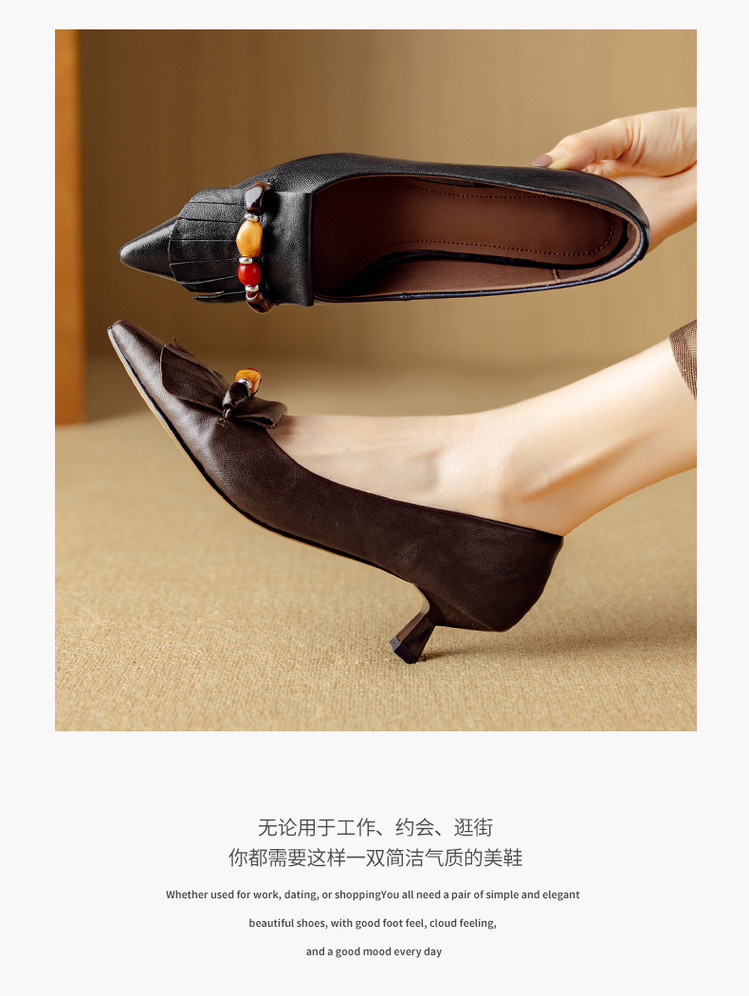 【预售5天】法式复古浅口单鞋女尖头新款小皮鞋真皮职场高跟工作鞋DB&M6532