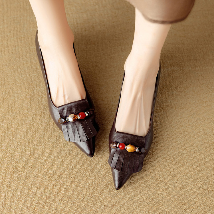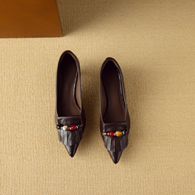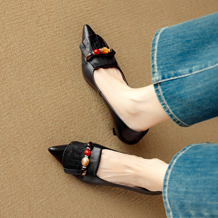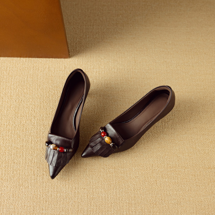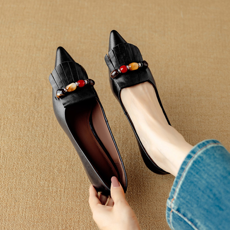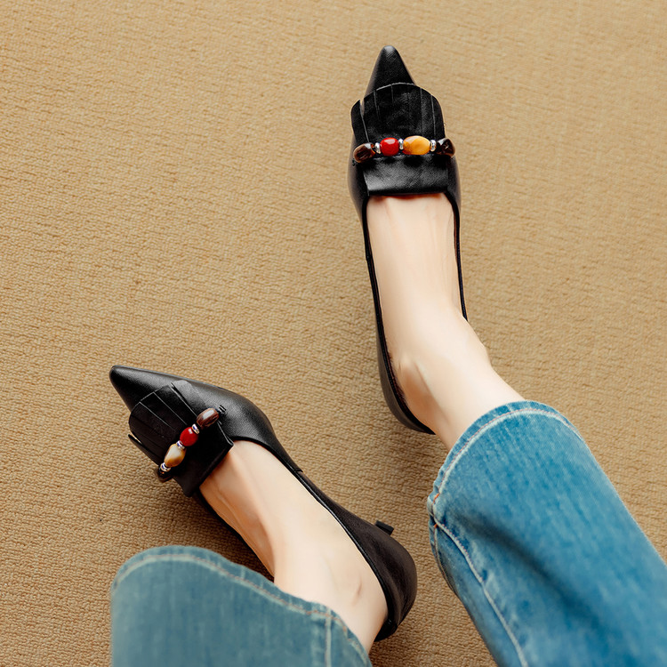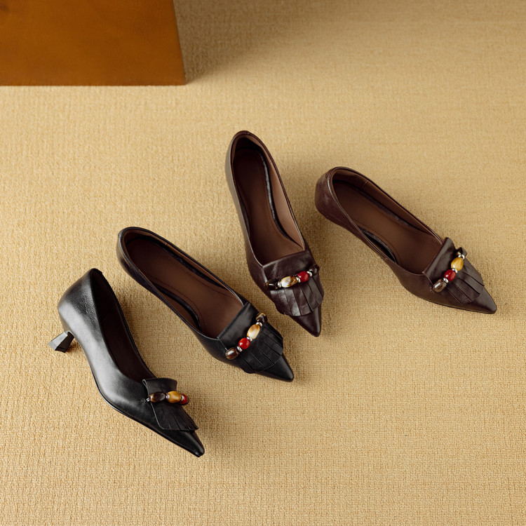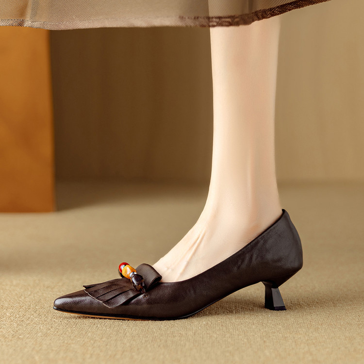 【预售5天】法式复古浅口单鞋女尖头新款小皮鞋真皮职场高跟工作鞋DB&M6532
