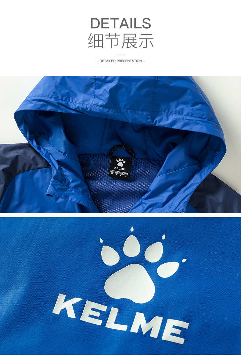 【亚洲杯同款】KELME卡尔美运动风雨衣男中甲同款防风防水足球训练外套男儿童风雨衣训练服