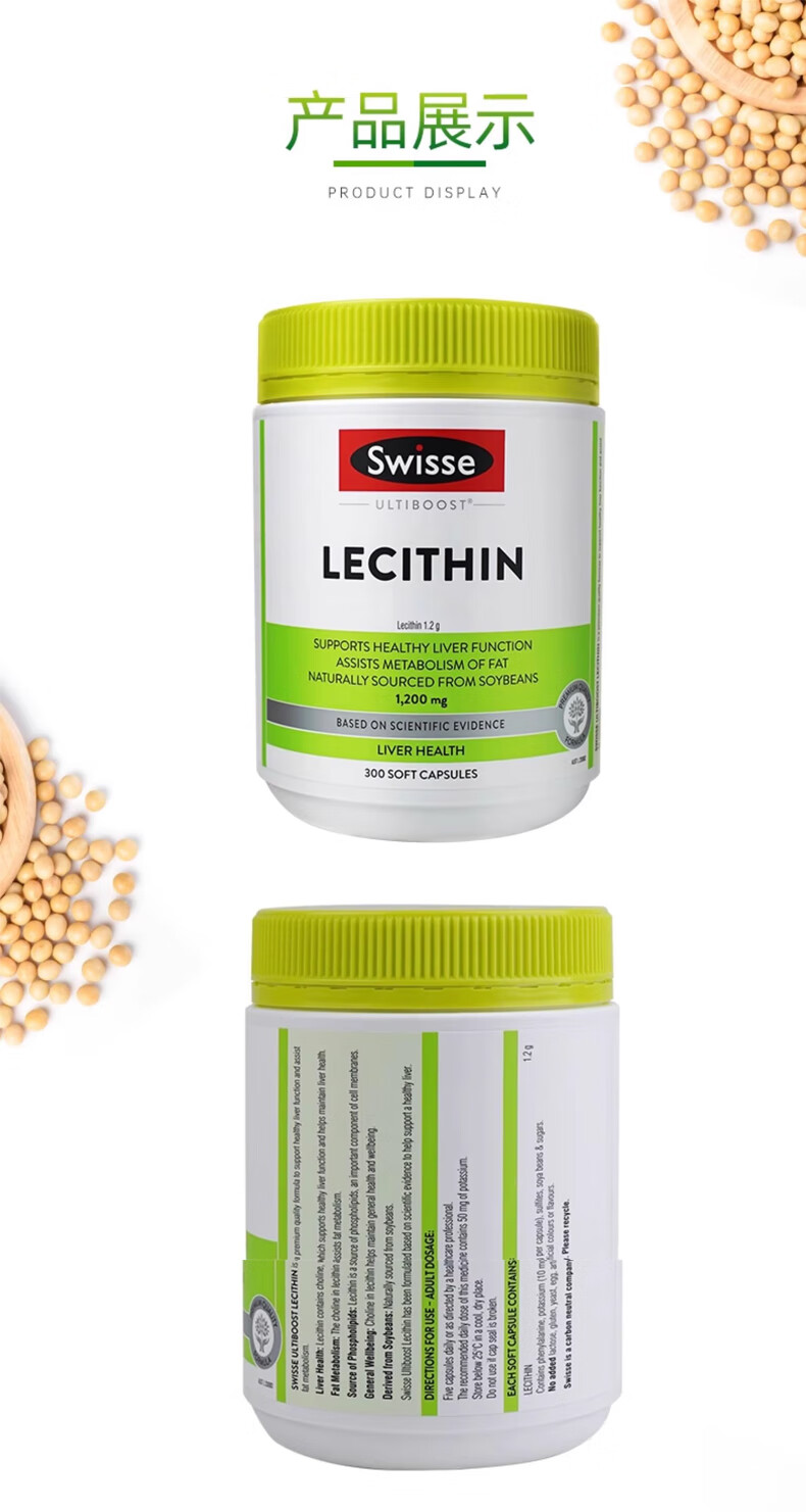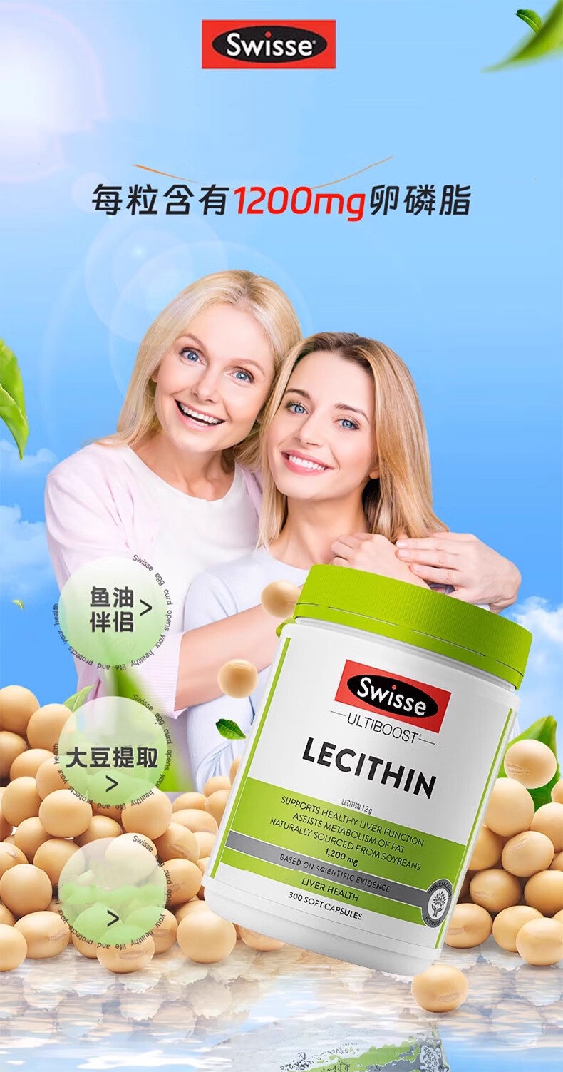 【跨境】澳洲Swisse斯维诗大豆卵磷脂胶囊1200mg*300粒成人中老年