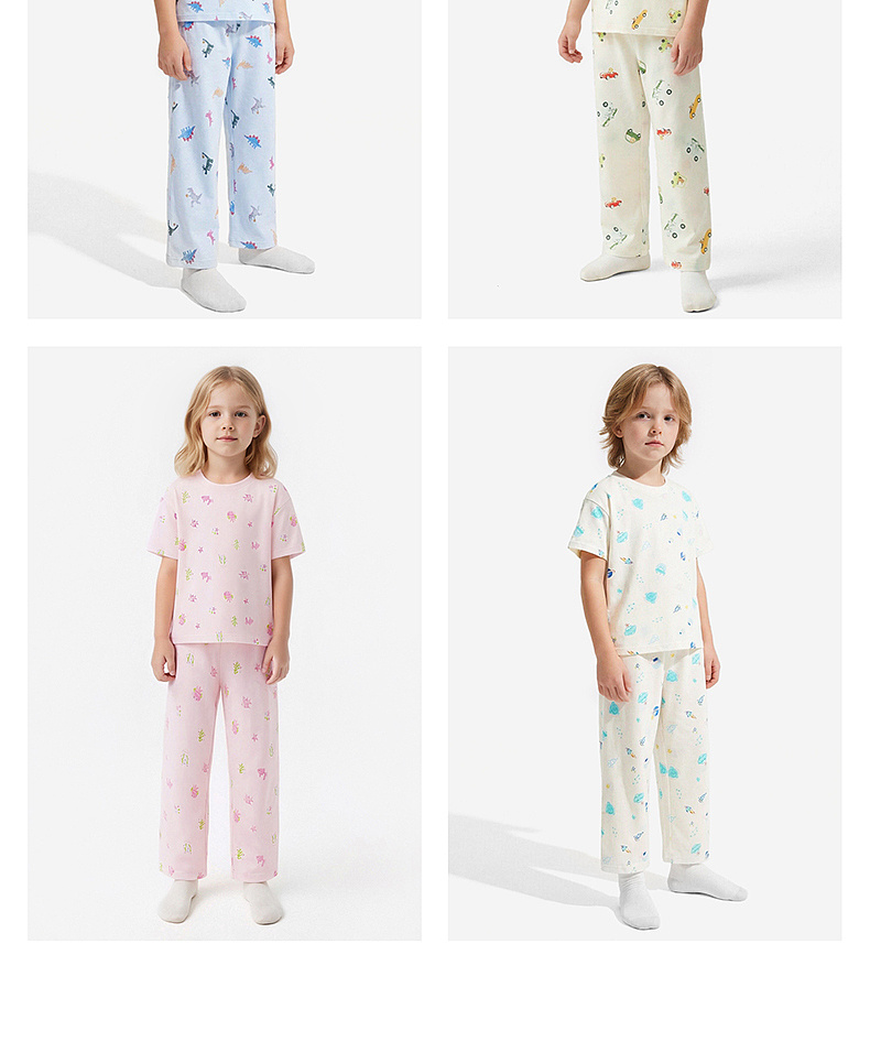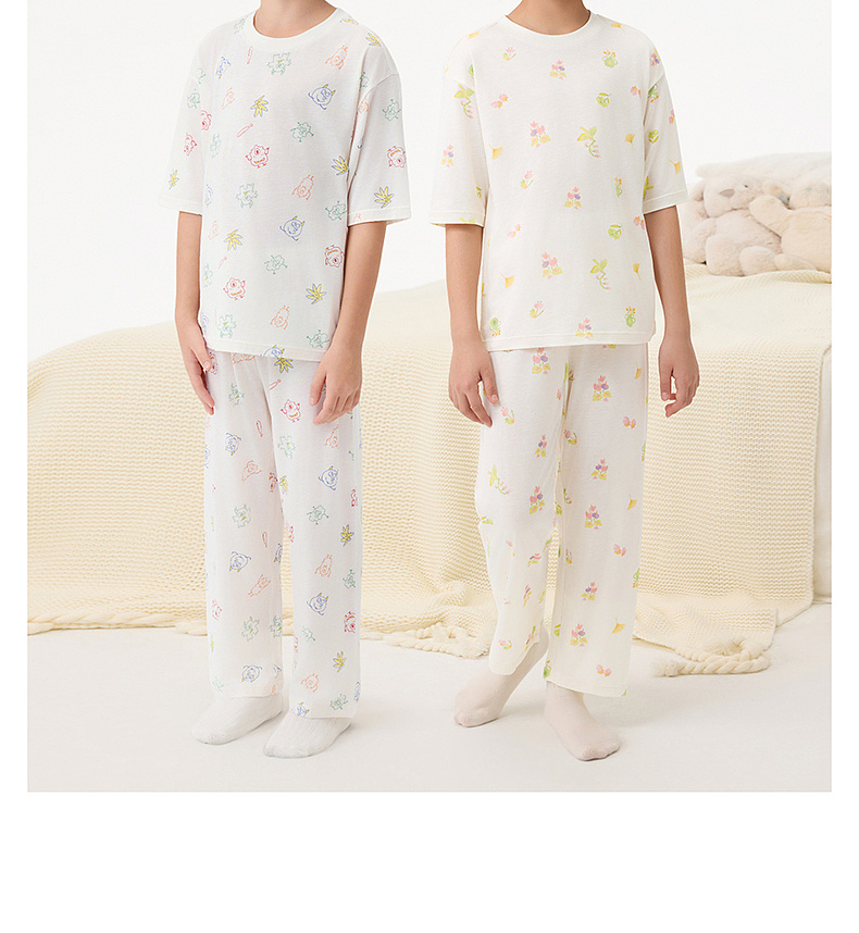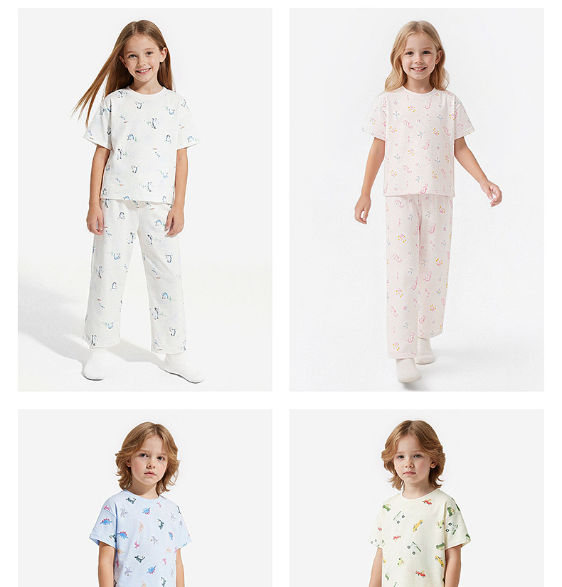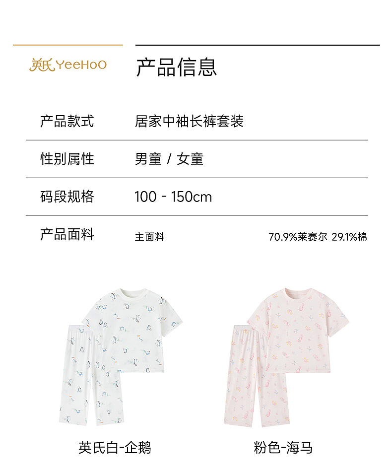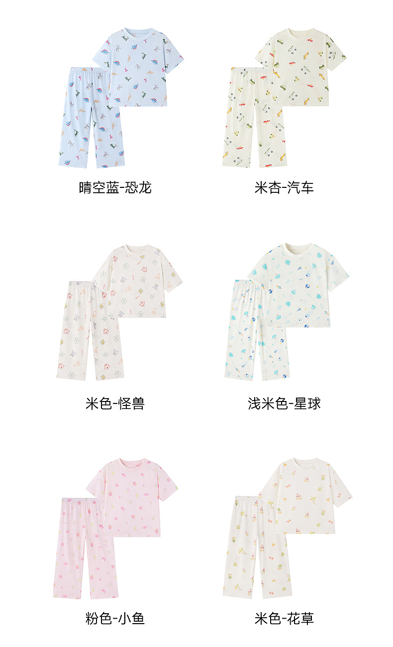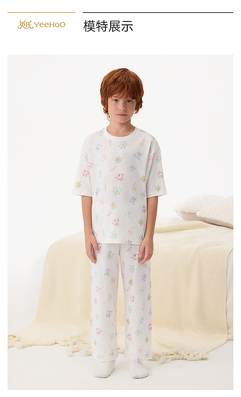 英氏儿童新款套装夏季男女短袖透气40s莱赛尔可爱睡衣家居服