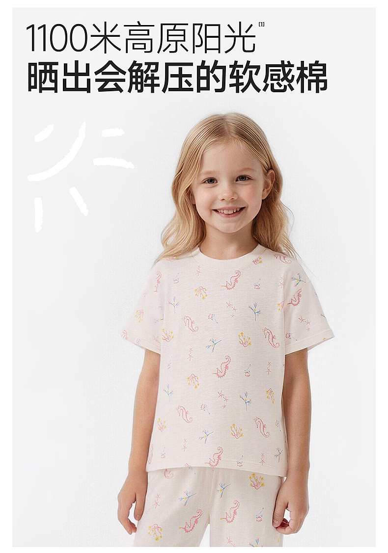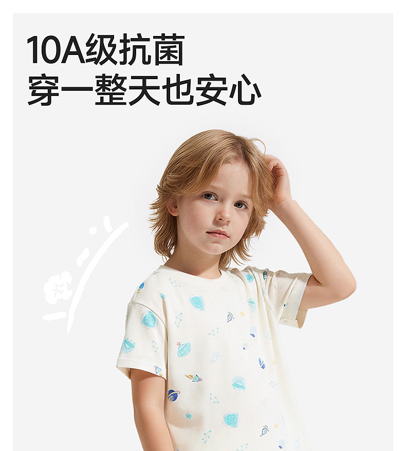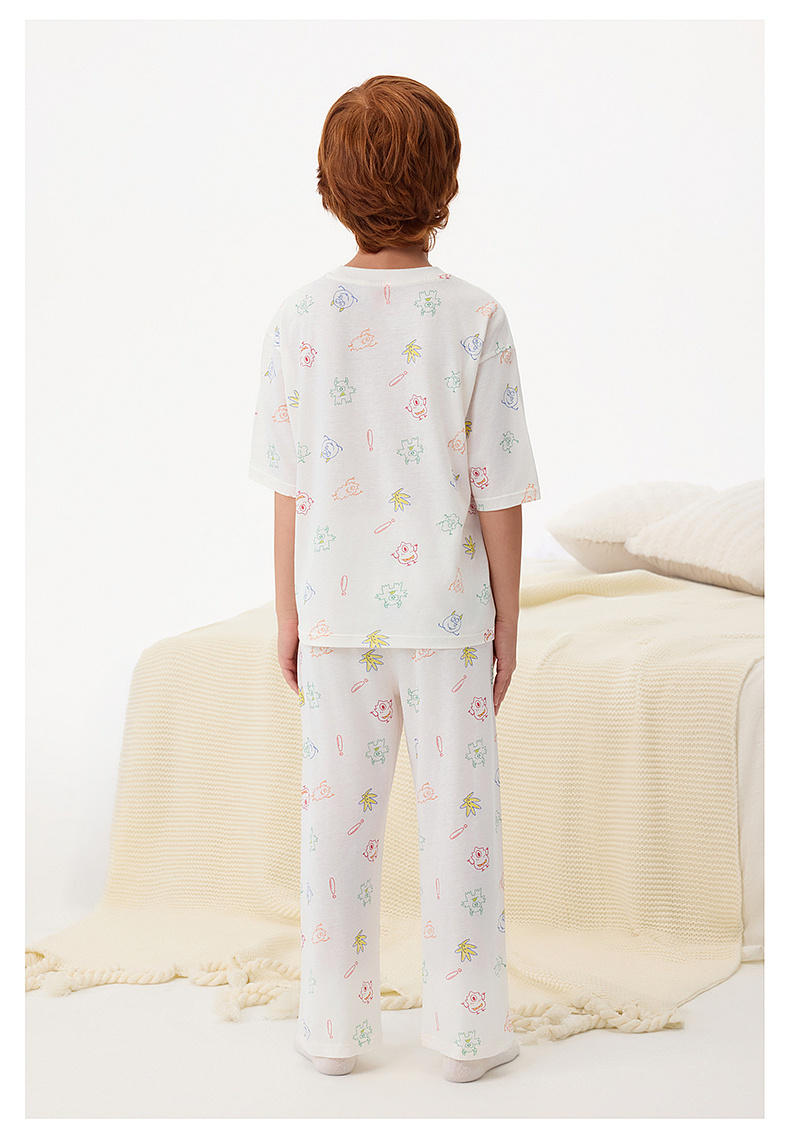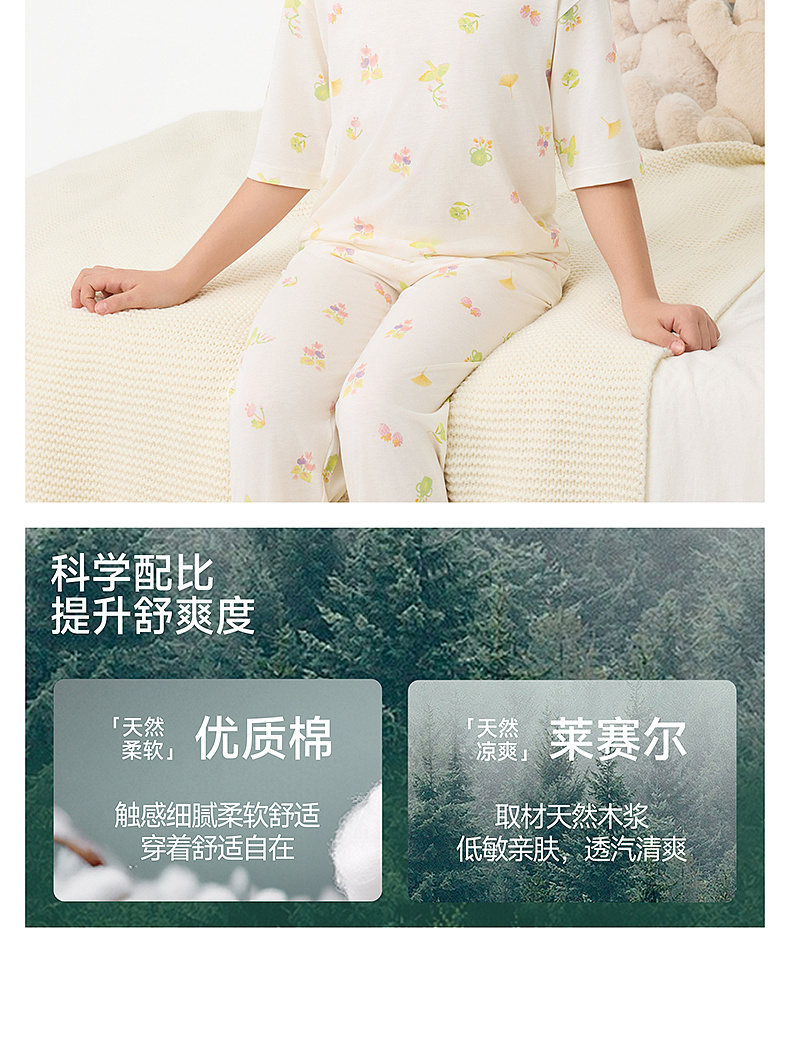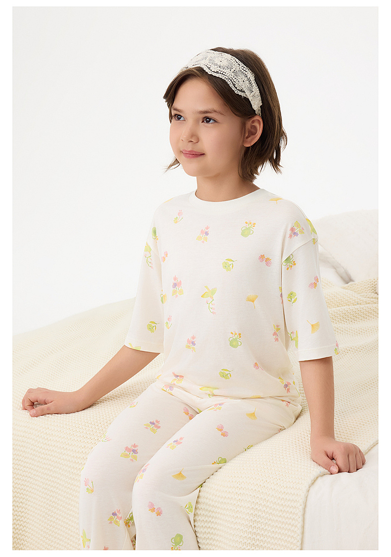 英氏儿童新款套装夏季男女短袖透气40s莱赛尔可爱睡衣家居服
