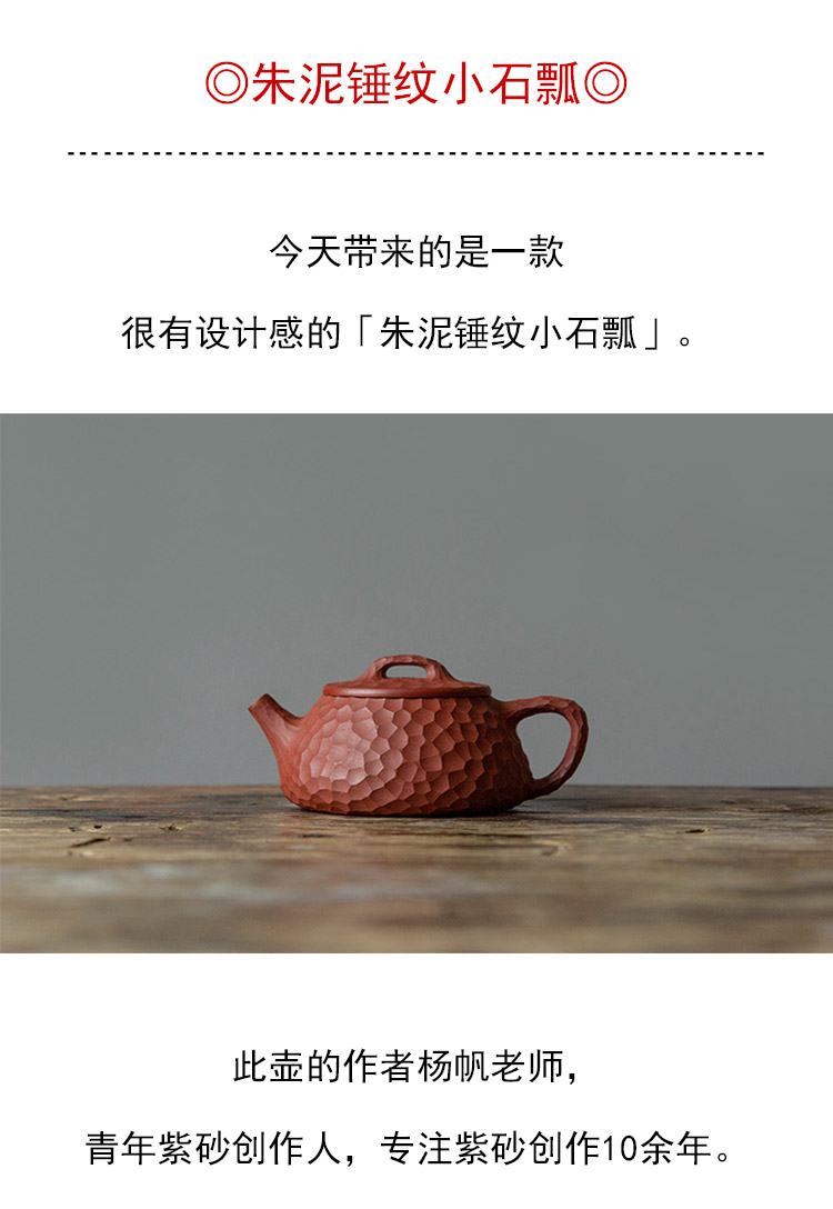 茶香记 紫砂壶 朱泥锤纹小石瓢 杨帆 泡茶壶 手工锤纹 经典器型