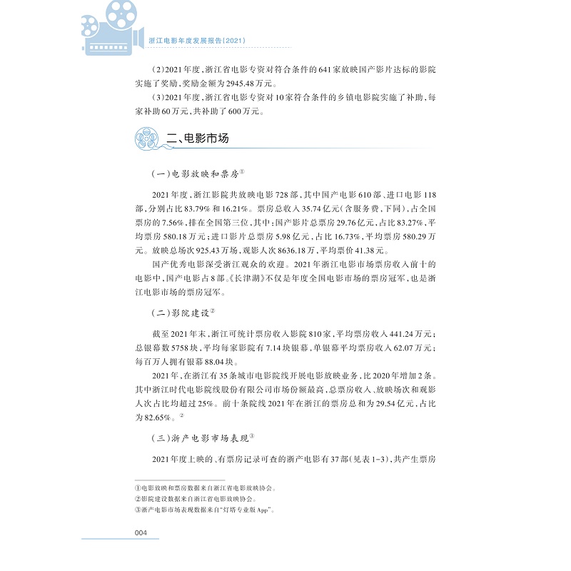 国产电影中的浙江力量正在崛起,在类型和题材、口碑和票房上不断开拓突破。这既是浙产电影的成就,也是中国电影行业发展的缩影。本书聚焦2021年浙江电影创作历程,全面分析浙产电影的创作概要、类型特征、市场份额等要素,梳理具有代表性的现象级浙产电影,盘点重点电影制作机构,概述院线和影视基地发展情况,从宏观视角展示产业概况。2021年的发展研究报告,将注重浙江电影的生产、传播和消费趋势,在实际数据基础上重于分析和思考,争取以quan威性和专业性的品质,为广大业界人员参考和借鉴。