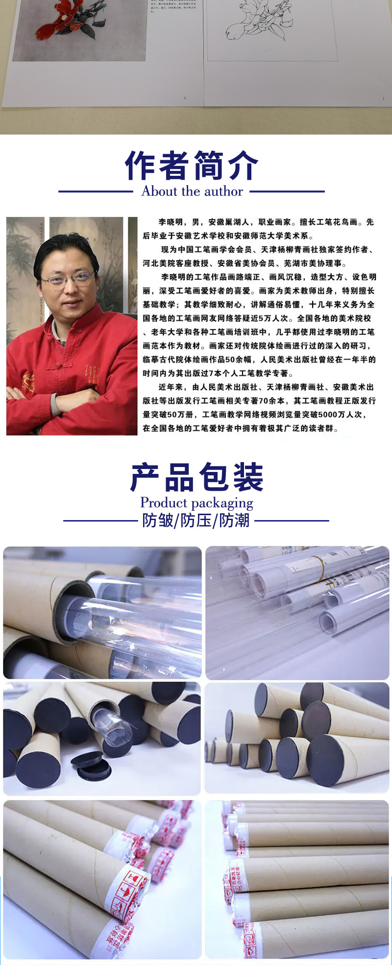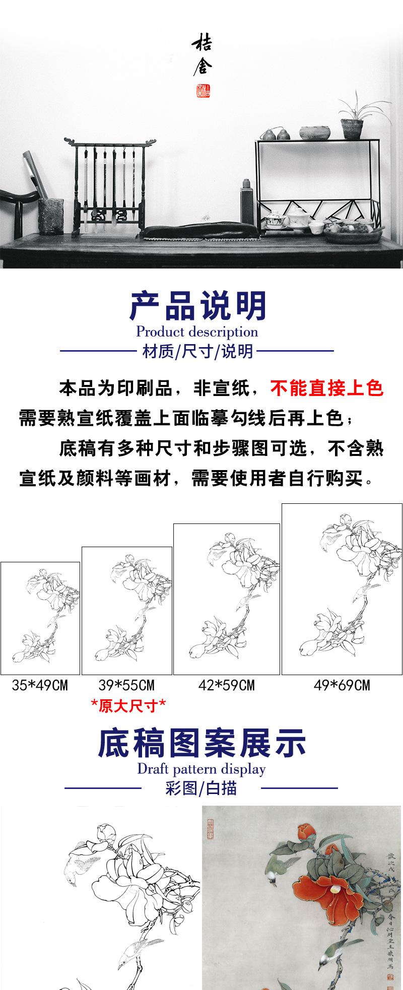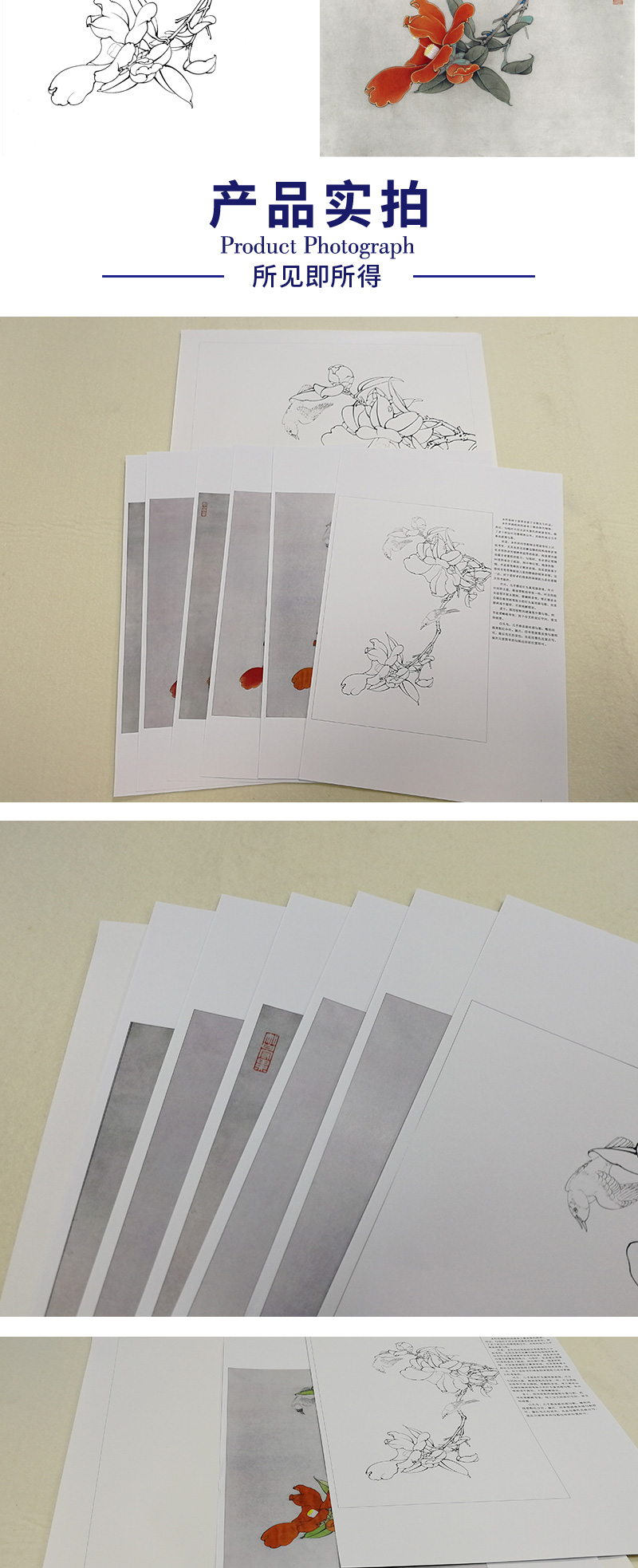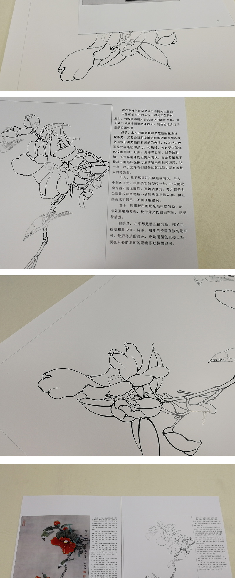 【有步骤、大彩图】李晓明工笔画白描稿《茶花白头》初学者临摹花鸟线稿KB17