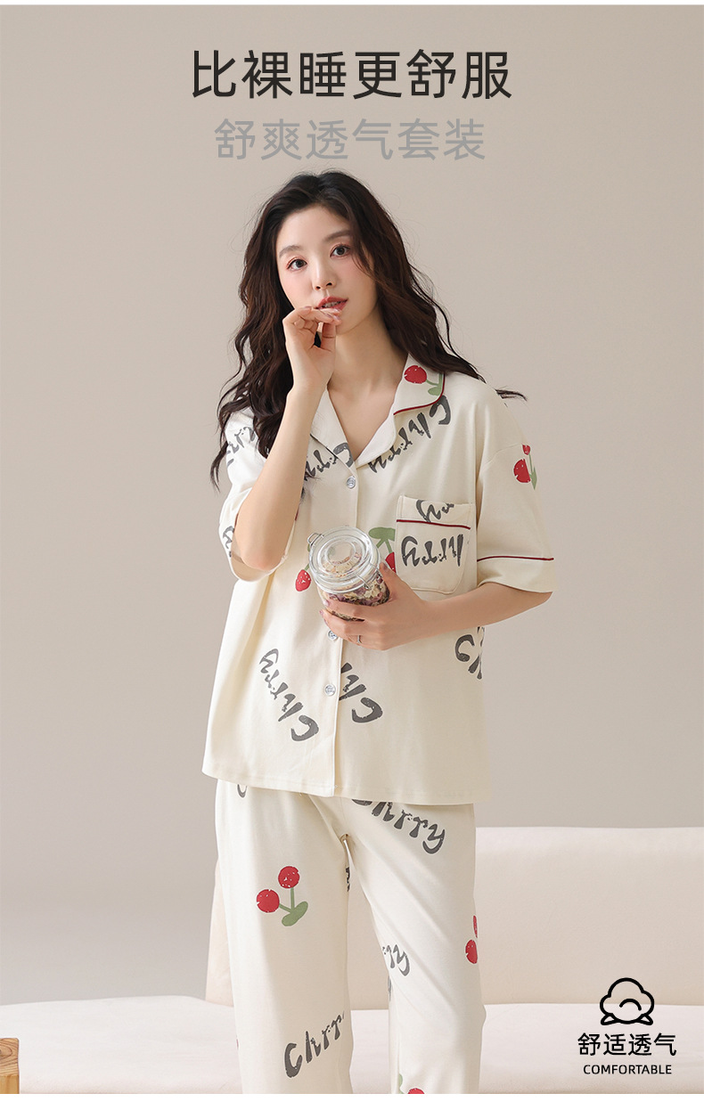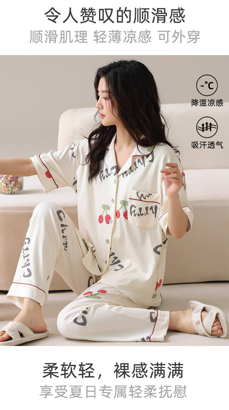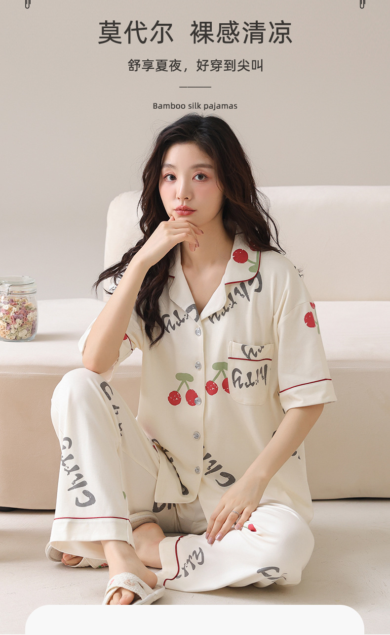 【裸感清凉,舒享夏夜~】睡衣女短袖长裤 甜美夏季套装 可外穿新款夏款 莫代尔家居服-QQ