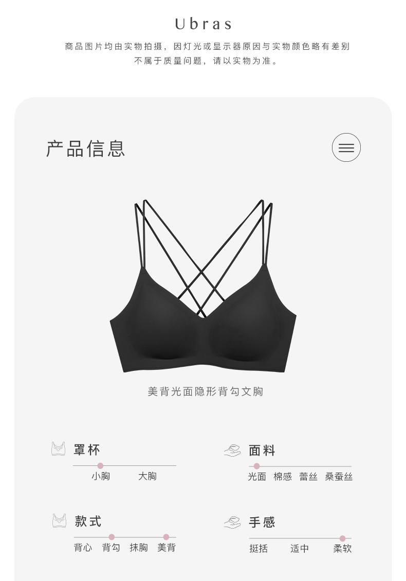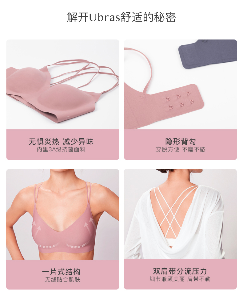 Ubras美背光面隐形背勾文胸新品舒适无痕无钢圈透气微聚拢内衣女