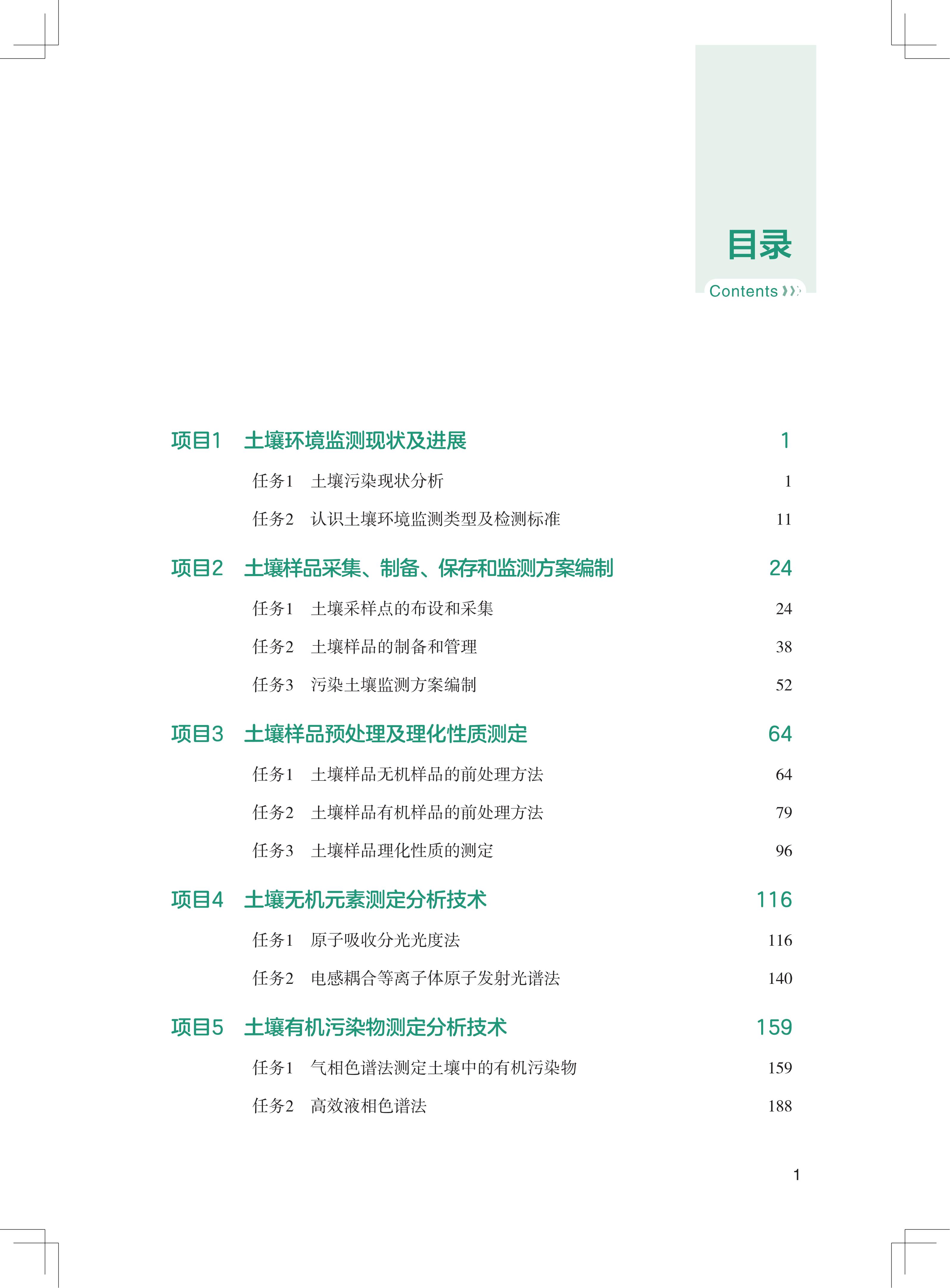 本书系统阐述土壤环境监测全流程技术,共设8大项目。项目1剖析土壤污染现状与监测标准体系;项目2详解采样布点、样品制备与方案编制规范,结合第三次全国土壤普查要求融入3S技术;项目3聚焦无机/有机污染物前处理技术,涵盖微波消解、加压流体萃取等核心方法;项目4-5分别解析原子吸收光谱、电感耦合等离子体、气相/液相色谱等分析技术;项目6强调数据处理与质量控制;项目7指导调查报告与监测报告撰写;项目8拓展X射线荧光、质谱及联用技术应用。教材以企业真实案例为载体,设置“任务导入”“技能训练”等模块,配套数字化资源,突出实践技能与思政融合,为高职环保类专业、企业培训提供全面技术支撑。