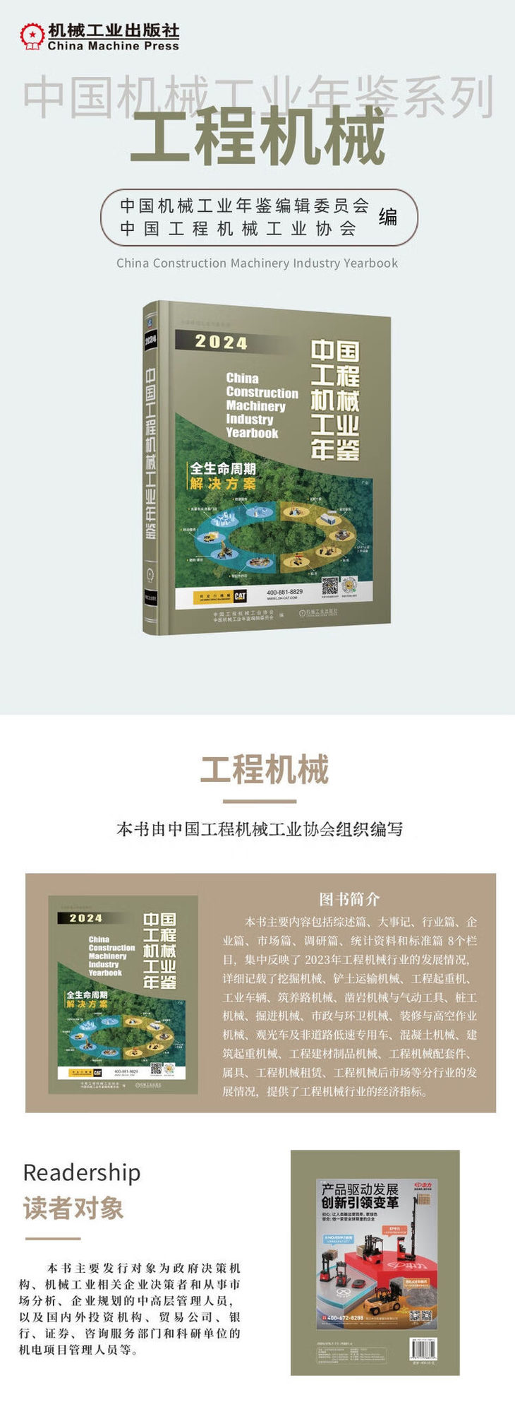《中国工程机械工业年鉴》一直致力于真实记载工程机械行业的发展变化,记录工程机械行业从规模扩张到质量提升的重大历史转变。作为行业发展史料,《中国工程机械工业年鉴》将继续发挥其独特的作用,引导工程机械行业由大变强,实现高质量发展再上新台阶,与广大企业、用户和关心我国工程机械行业的读者一起推动我国工程机械在高质量发展道路上不断前行。