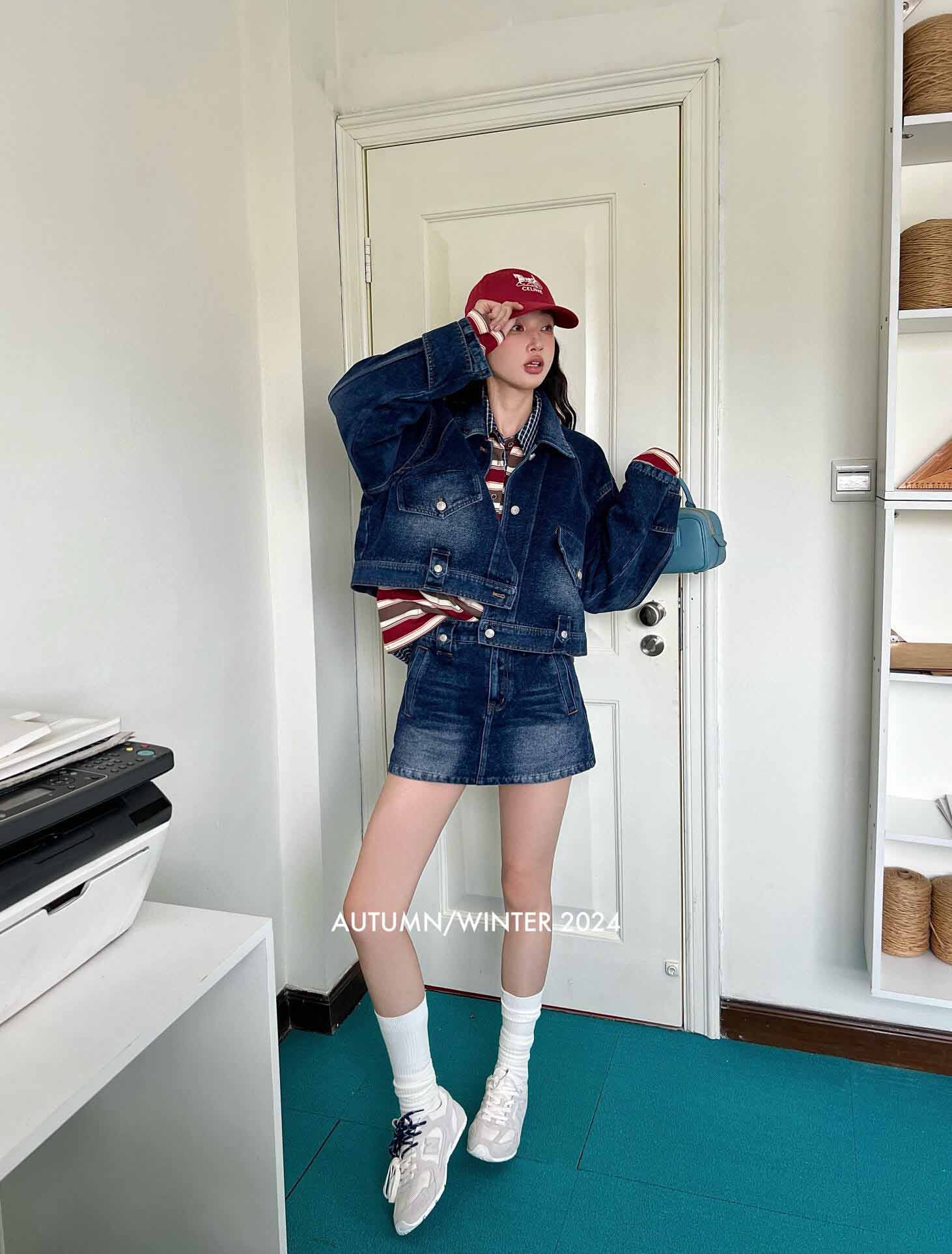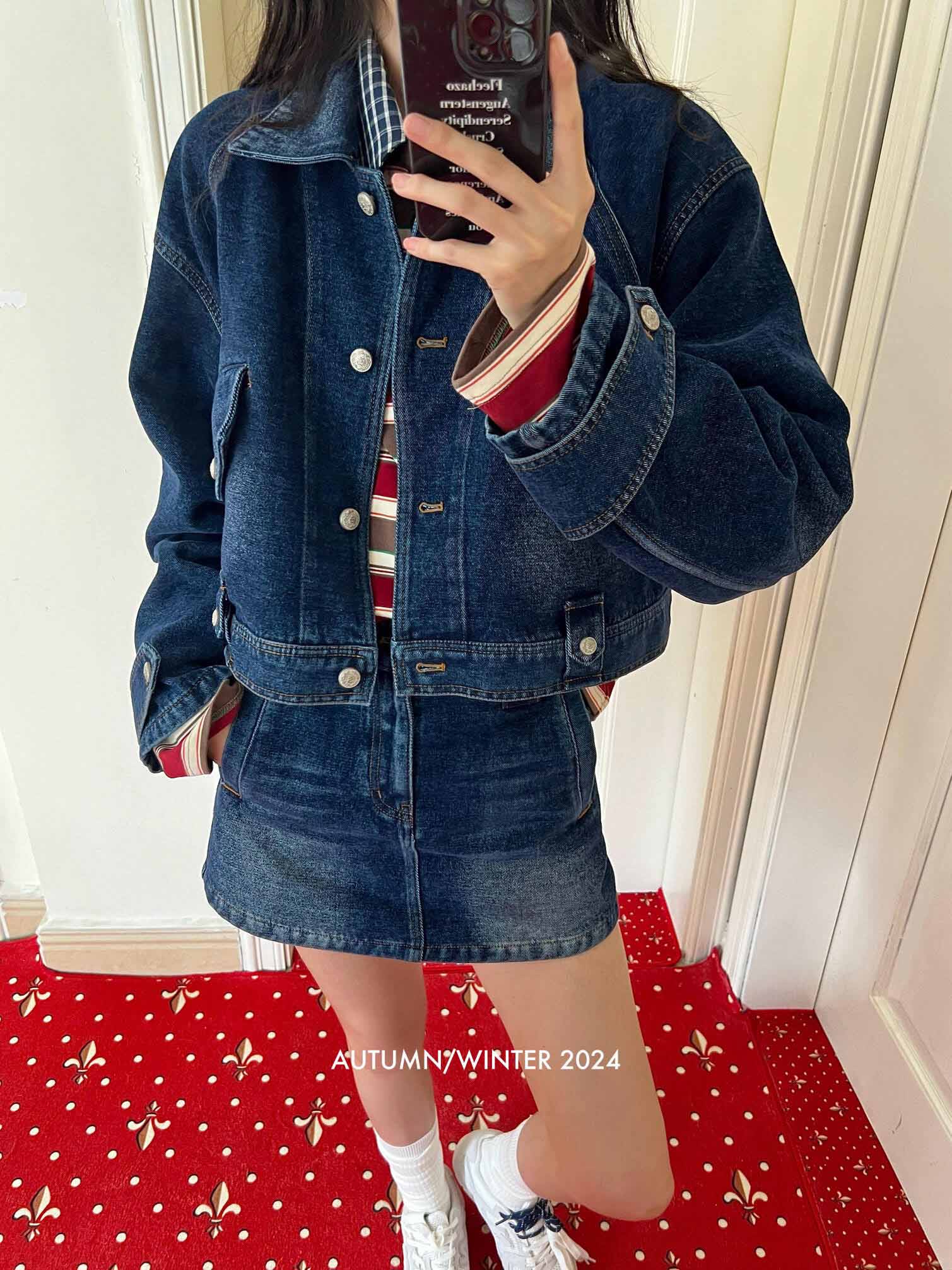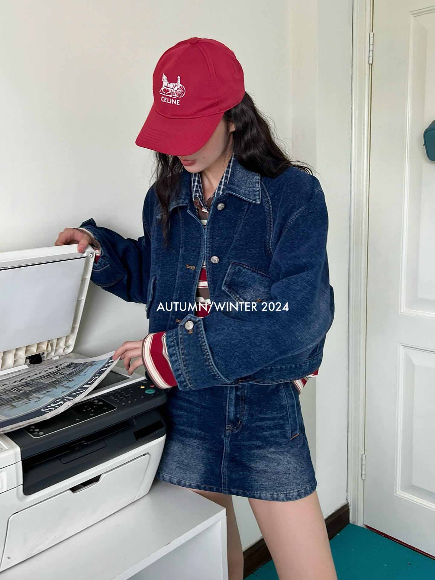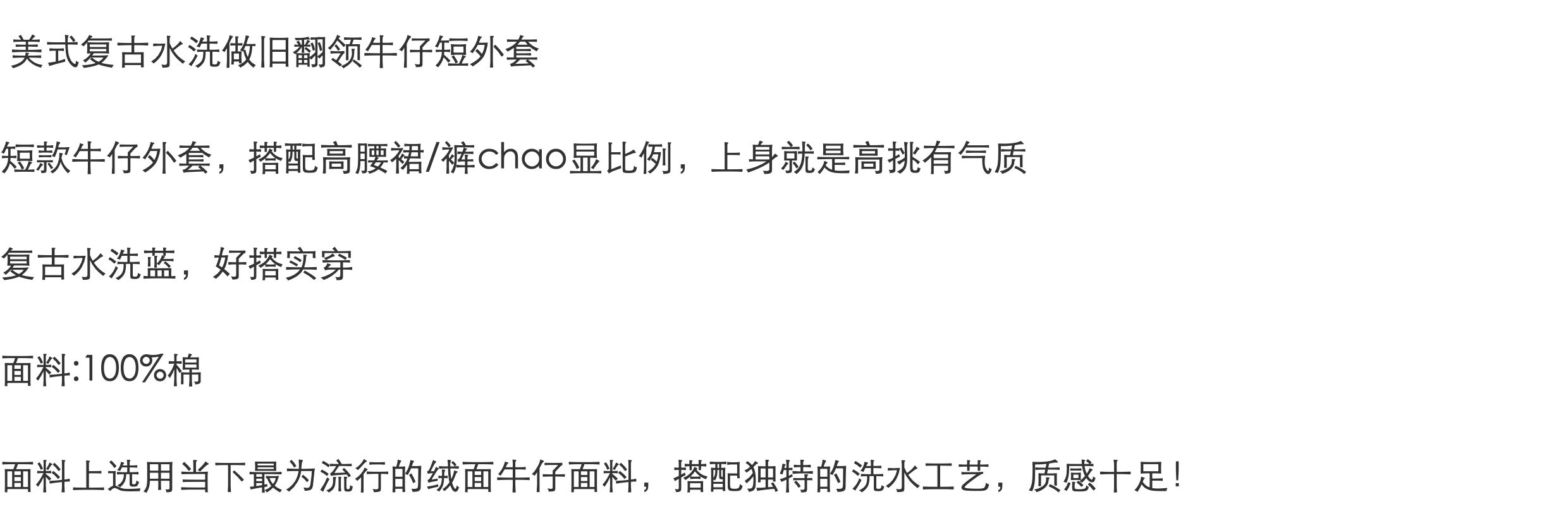 顺丰包邮洛诗琳44337美式复古水洗做旧翻领牛仔短外套女606