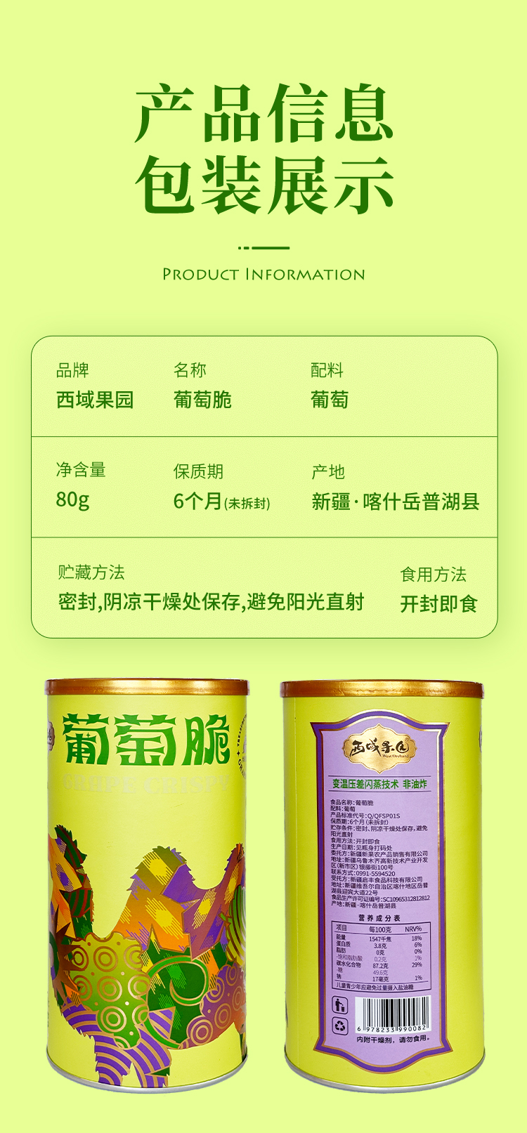 西域果园·葡萄脆 80g*3 果粒完整 酸甜酥脆 非油炸变温压差闪蒸技术