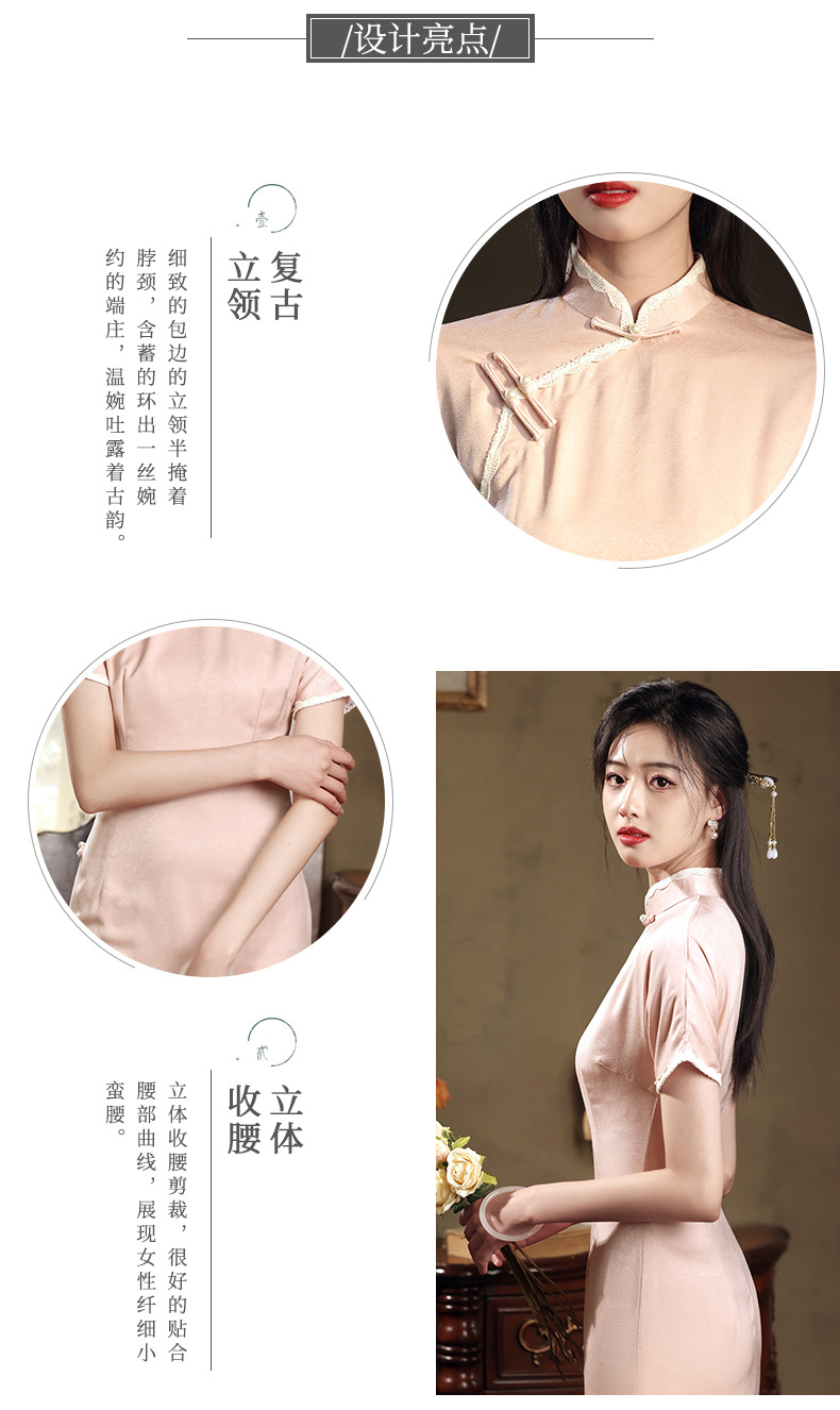 QZX3110粉色 粉色少女旗袍2025春夏新款新中式复古气质年轻款连衣裙女优雅复古 商品图4