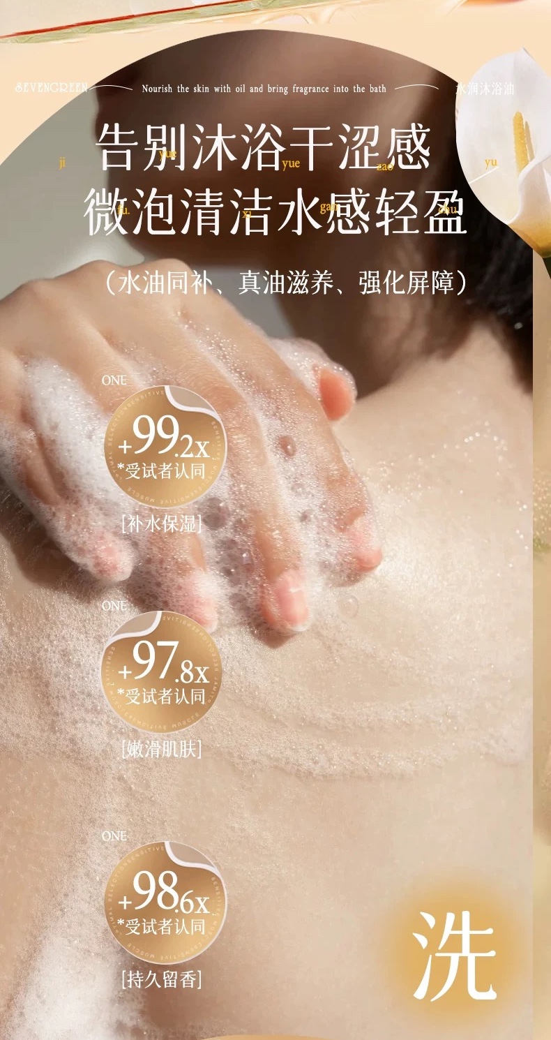 而且大牌高级香超长待机堪比香水行走!!真的很难不爱!!洗卸养一瓶顶三!这个沐浴油真的绝了! 本来对沐浴油是抗拒的,总怕洗不干净还黏腻,但这瓶彻底改观了我对油的刻板印象 夏天涂防晒最烦卸不干净,但到它这就是洗个澡的事儿很轻盈的水感油质地,遇水瞬间乳化,全身揉搓时像是在做SPA一样,防晒和素颜霜轻松溶解里面有珍稀刺阿干树仁油和多重植萃舒缓成分,洗后完全没有膜感,也不会拔干,皮肤摸起来又软又嫩~而且用法超级单!!