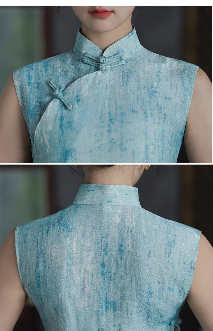 青绿色古法全开襟旗袍日常可穿素雅复古BJS3560