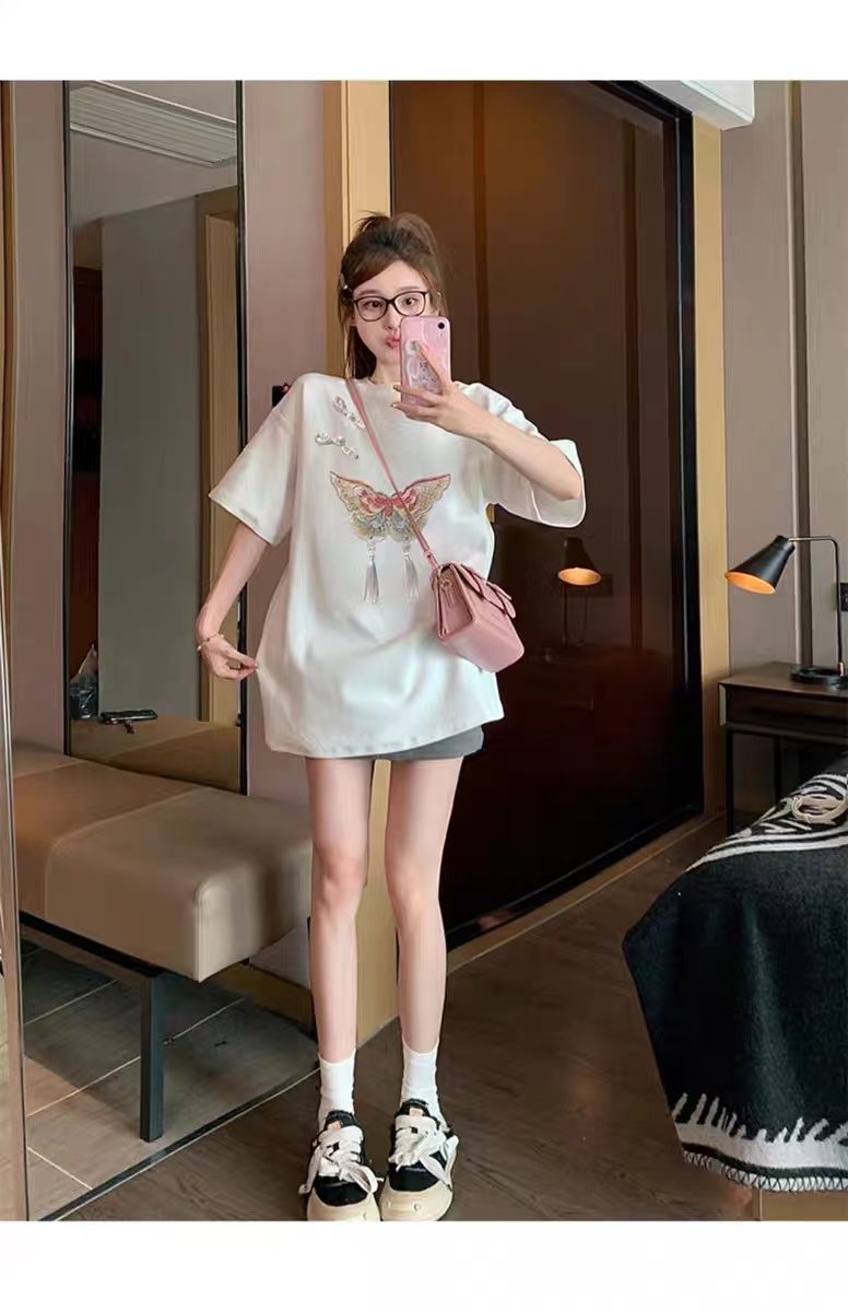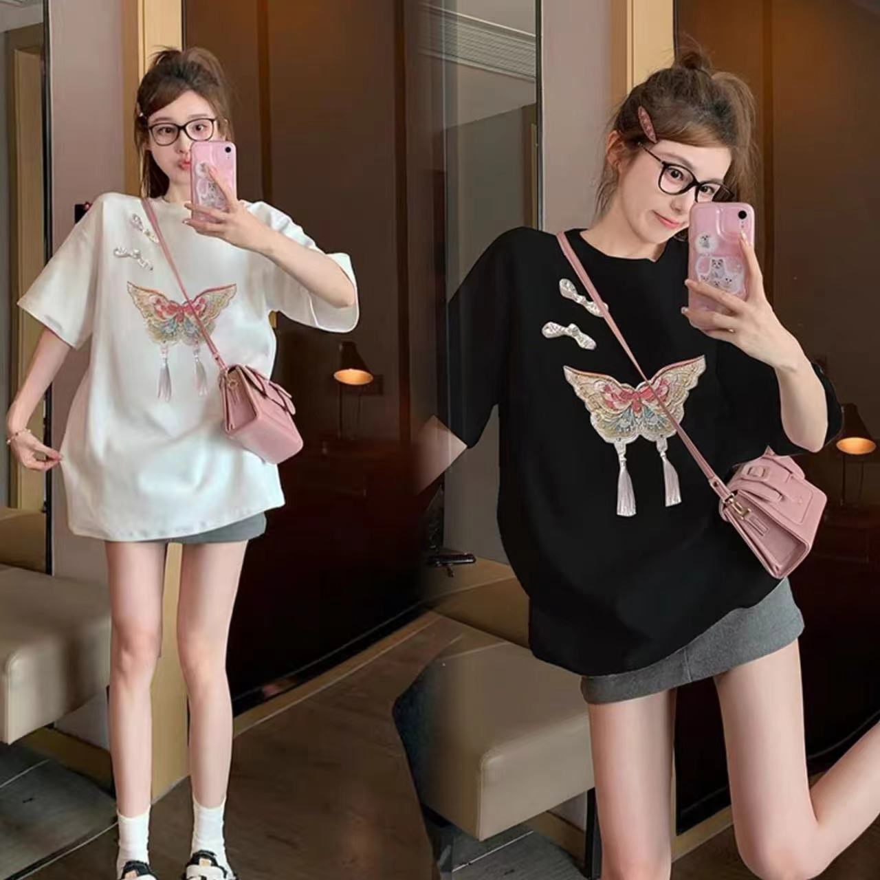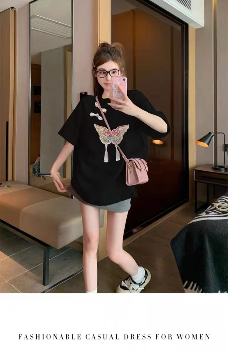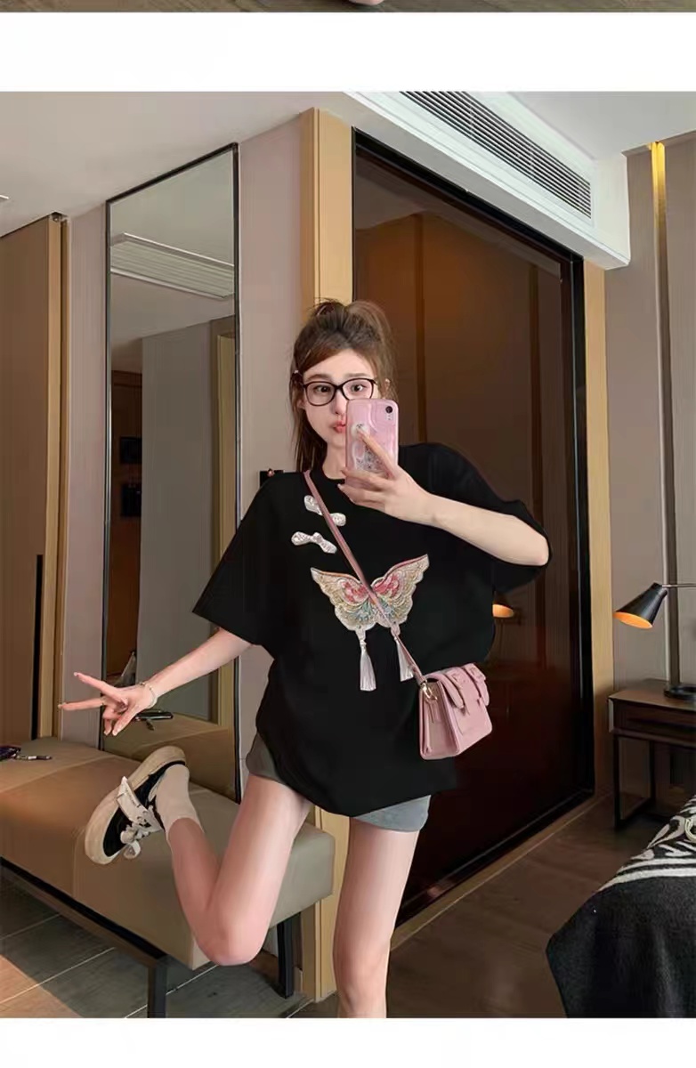 【限时价】喜出100%棉-04国风盘扣+蝴蝶 印花情侣T恤