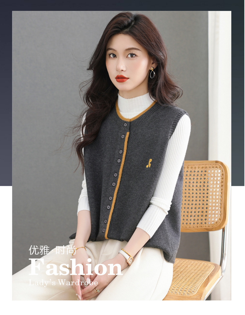 雀说爆款女士针织马甲背心外套短款漂亮洋气坎肩毛衣开衫AL6527