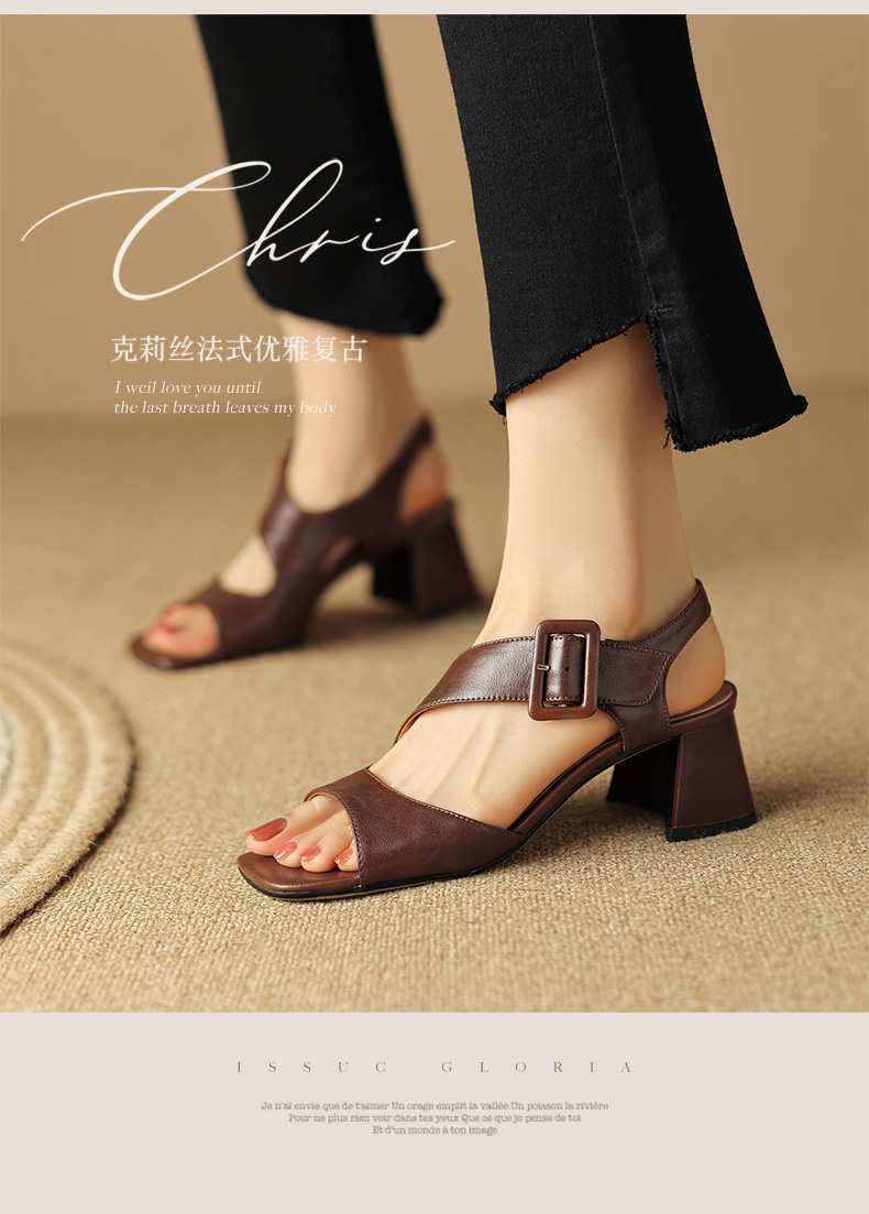 夏季新款,粗跟复古罗马凉鞋LD-6325