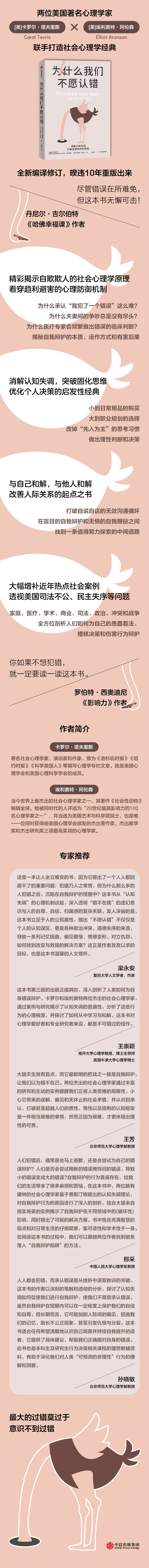 塔夫里斯和阿伦森强强联手,运用他们非凡的才能,创造出这本极富社会洞察力和科学性的典范佳作。毫无疑问,你如果不想犯错,就一定要读一读这本书。