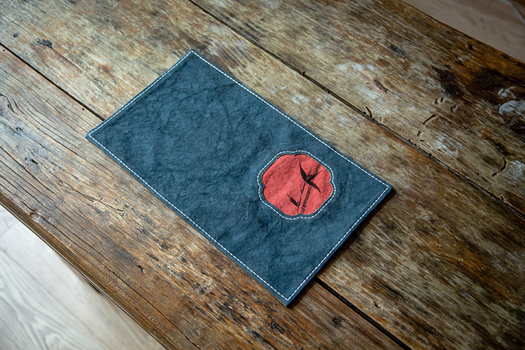 扎染帆布海棠开窗双面小茶席为40*23cm的长宽比,