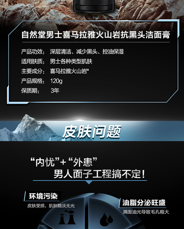 自然堂男士喜马拉雅火山岩抗黑头洁面膏120gJPY带授权招加盟代理