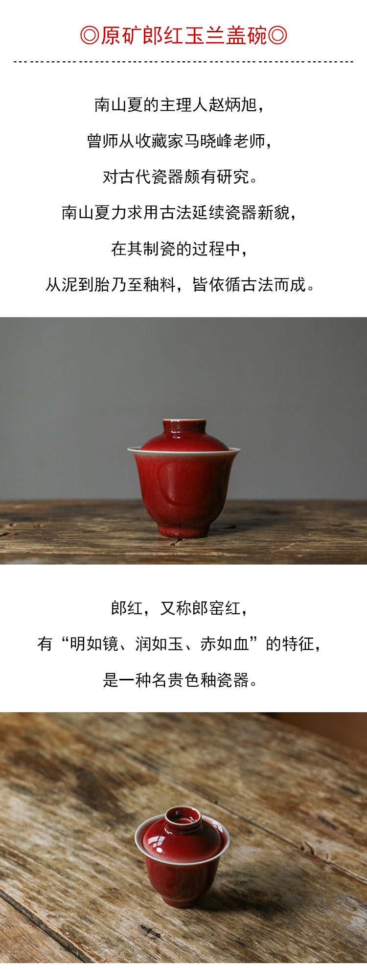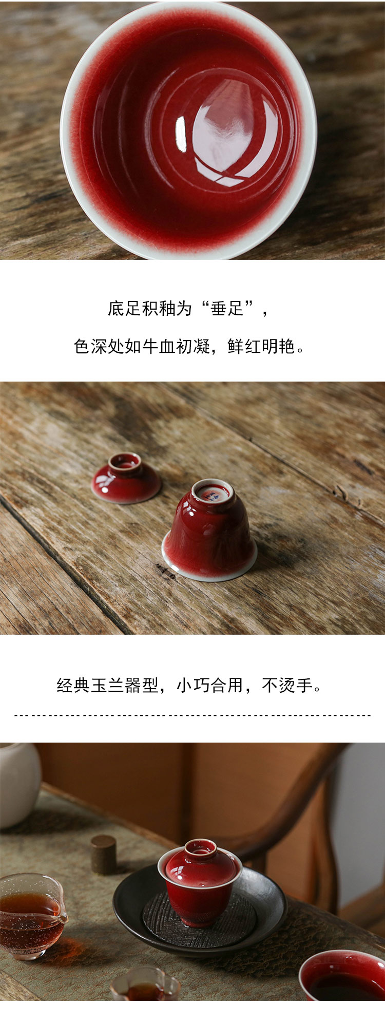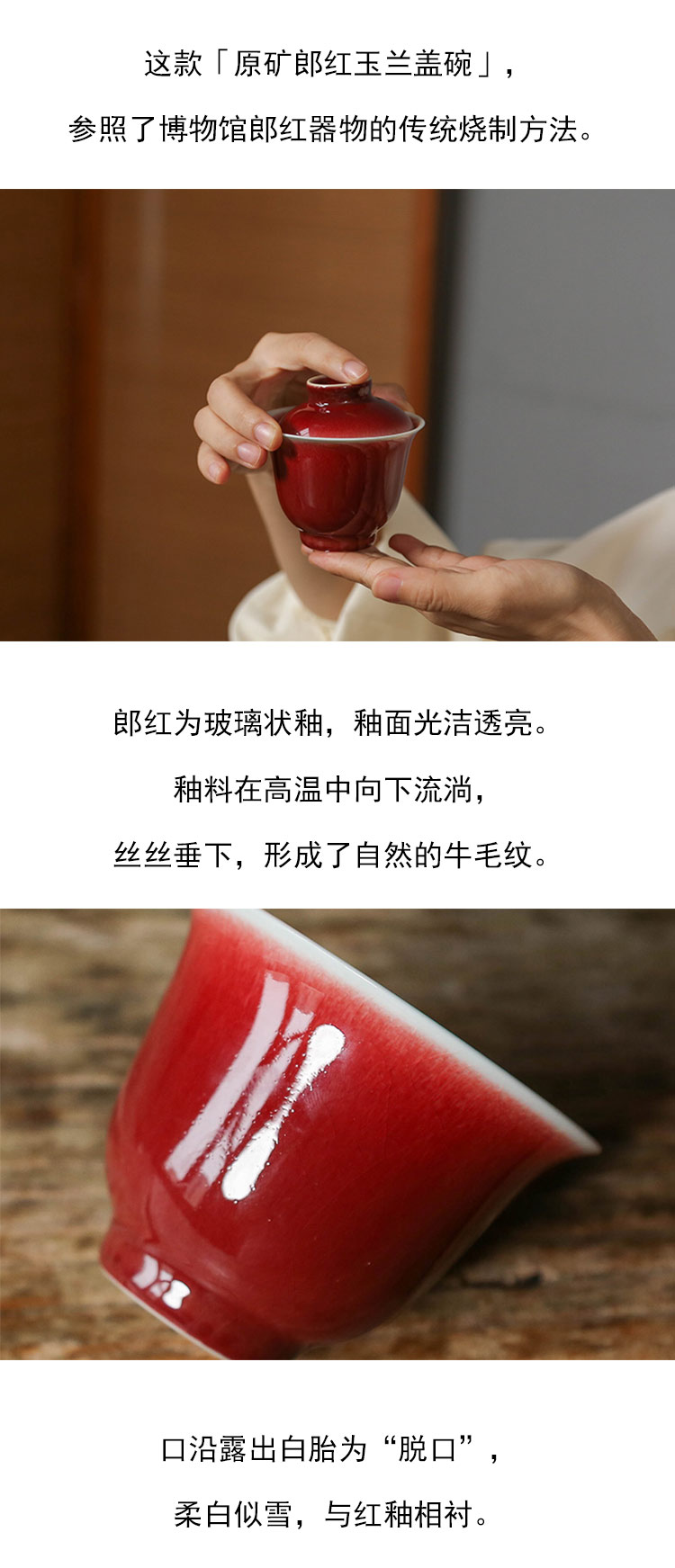 茶香记 原矿郎红玉兰盖碗 陶瓷 鲜红明艳 牛毛纹 传统烧制 功夫茶具