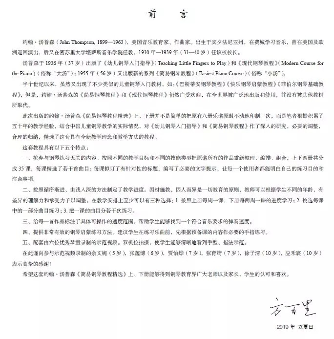 约翰·汤普森 简易钢琴教程精选(上、下)套装