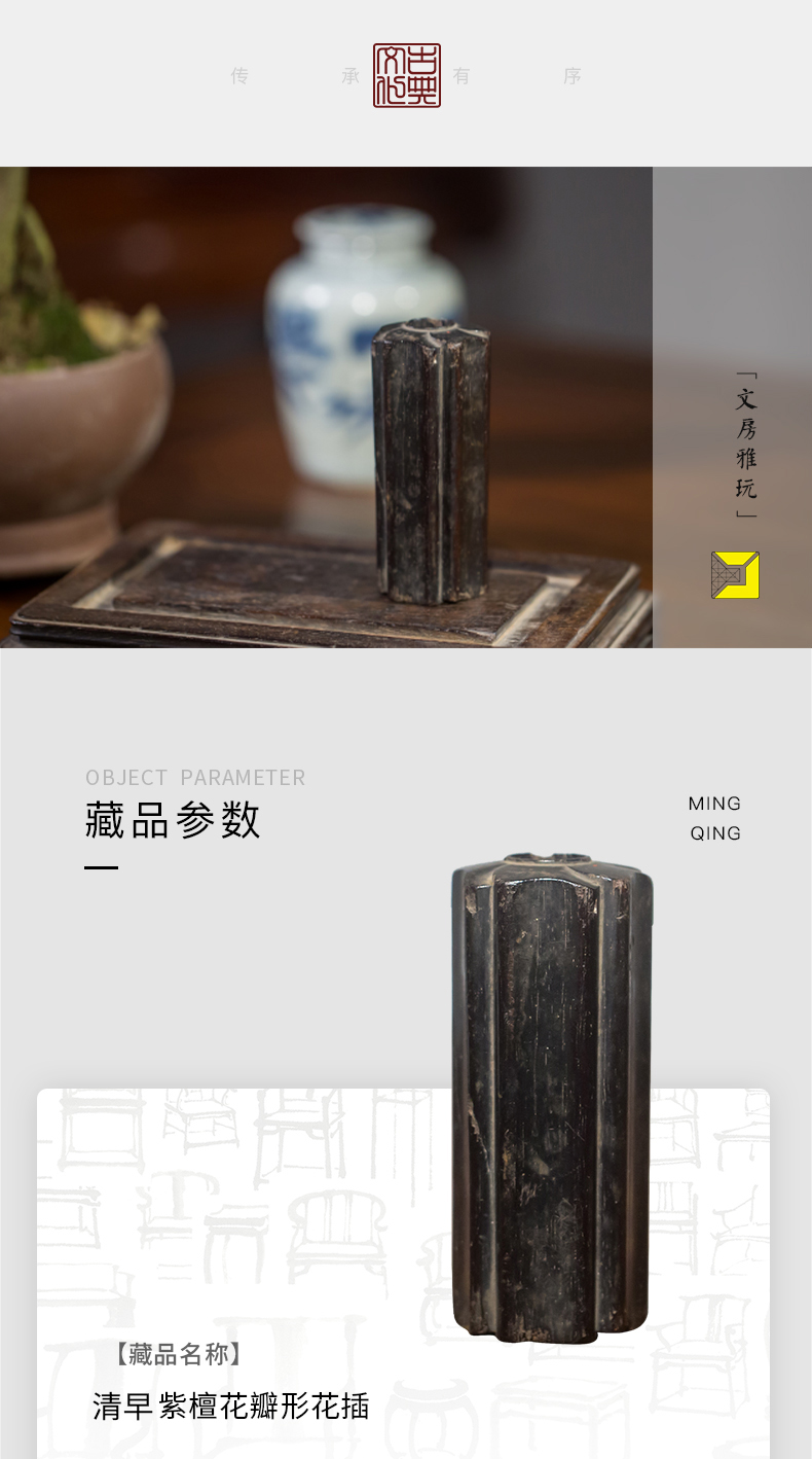 清早期 紫檀花瓣形花插