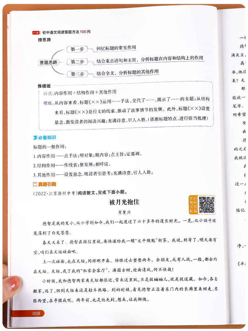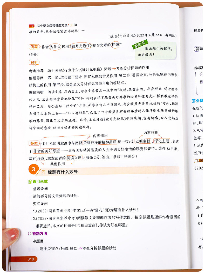 2025版一本初中语文阅读答题方法100问答题技巧速查七八九年级中考真题讲解训练