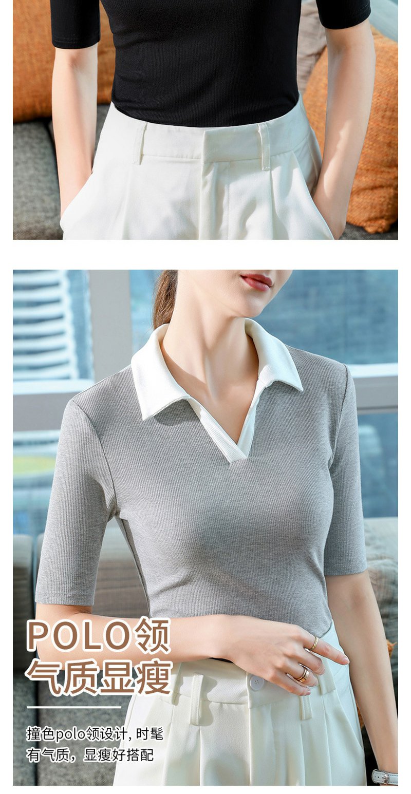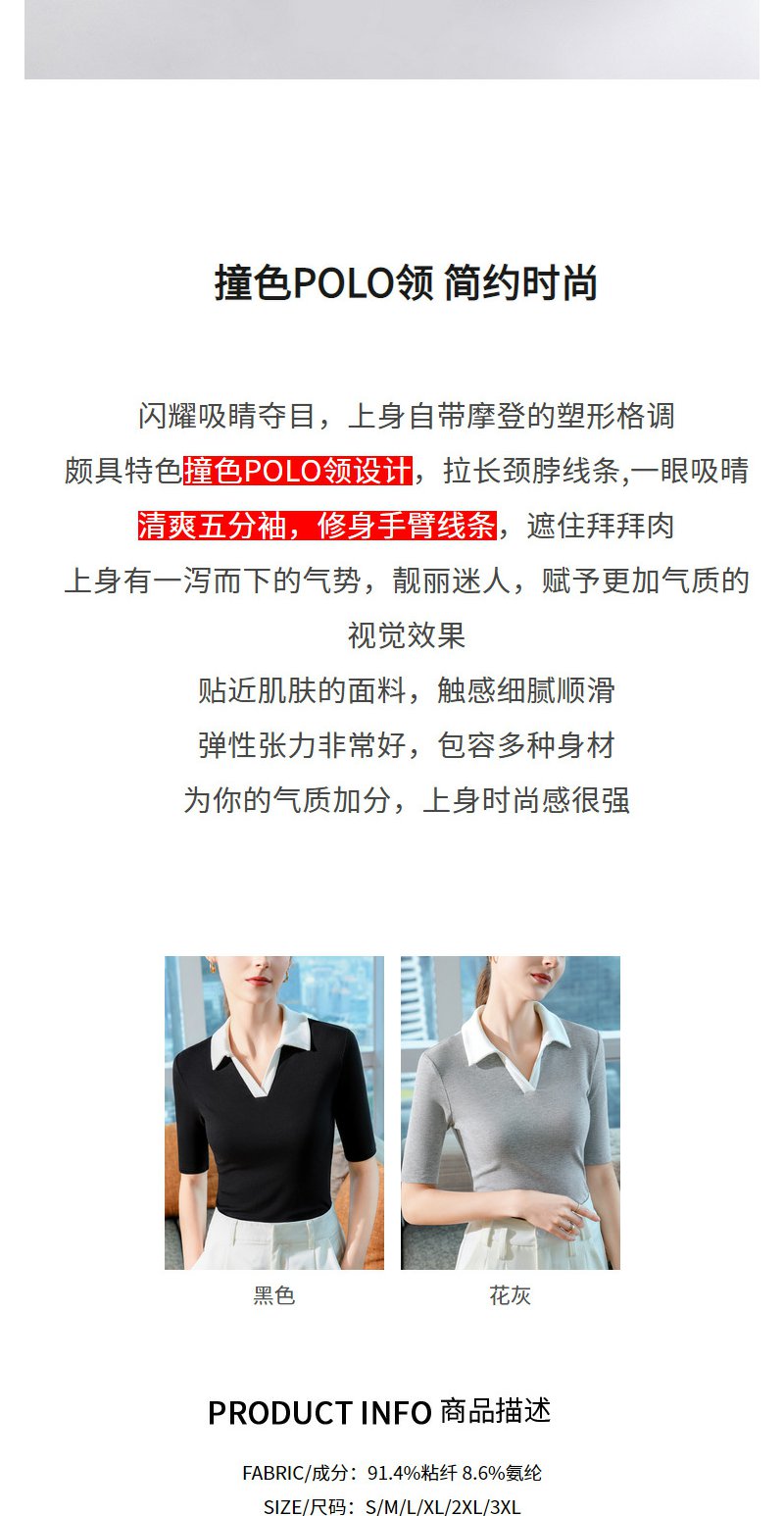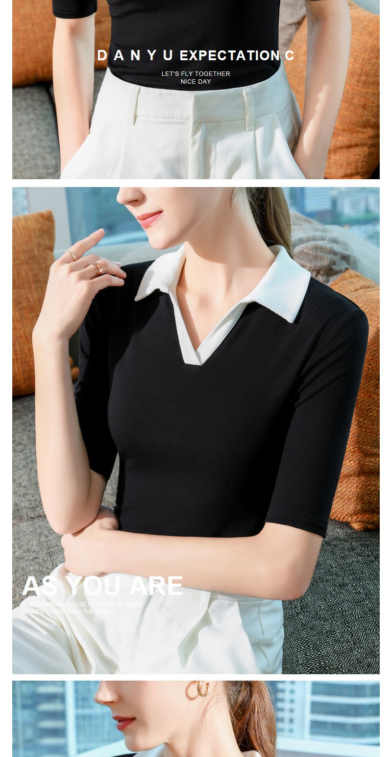 TZF-五分袖polo领t恤女秋季新款设计感小众别致翻领中袖撞色上衣