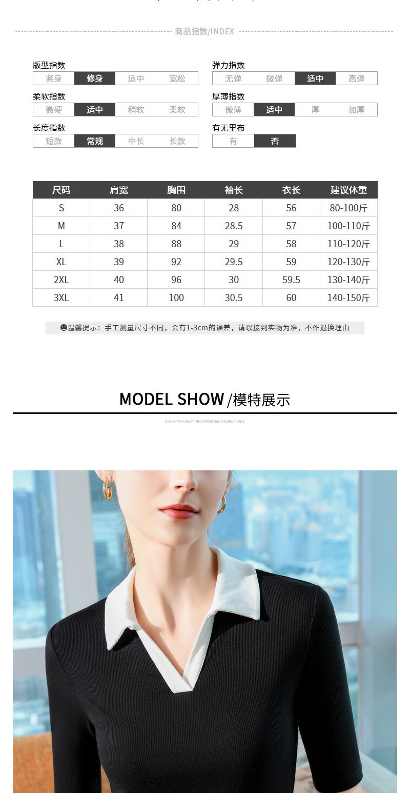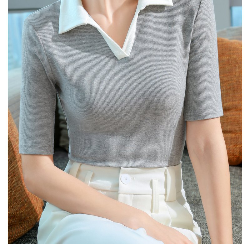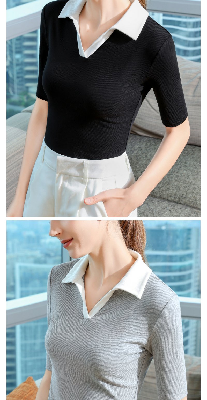 TZF-五分袖polo领t恤女秋季新款设计感小众别致翻领中袖撞色上衣