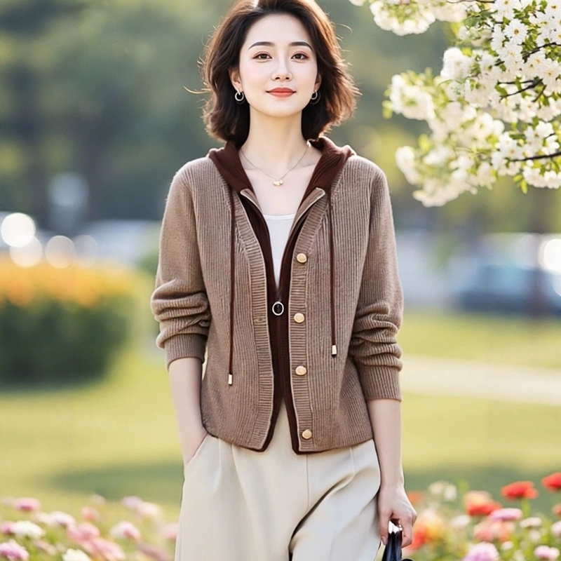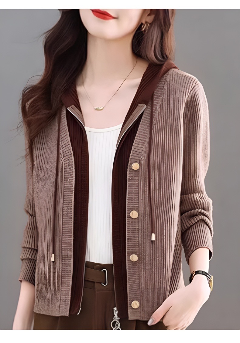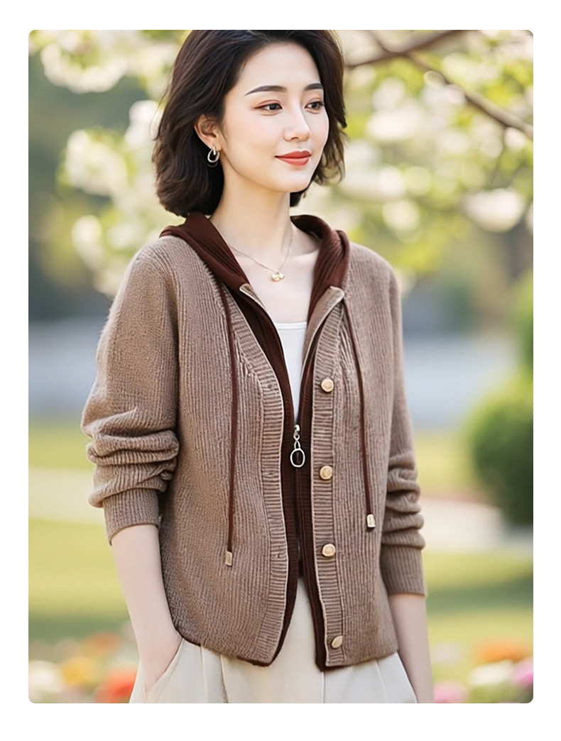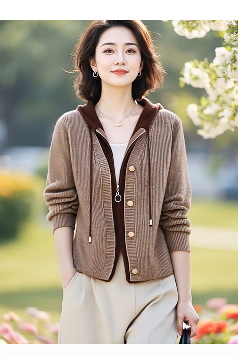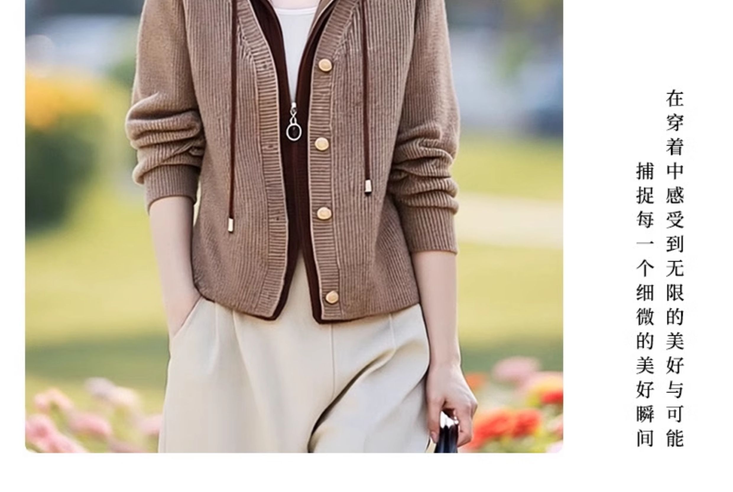 气质优雅假两件,连帽针织开衫外套上衣LJX-563